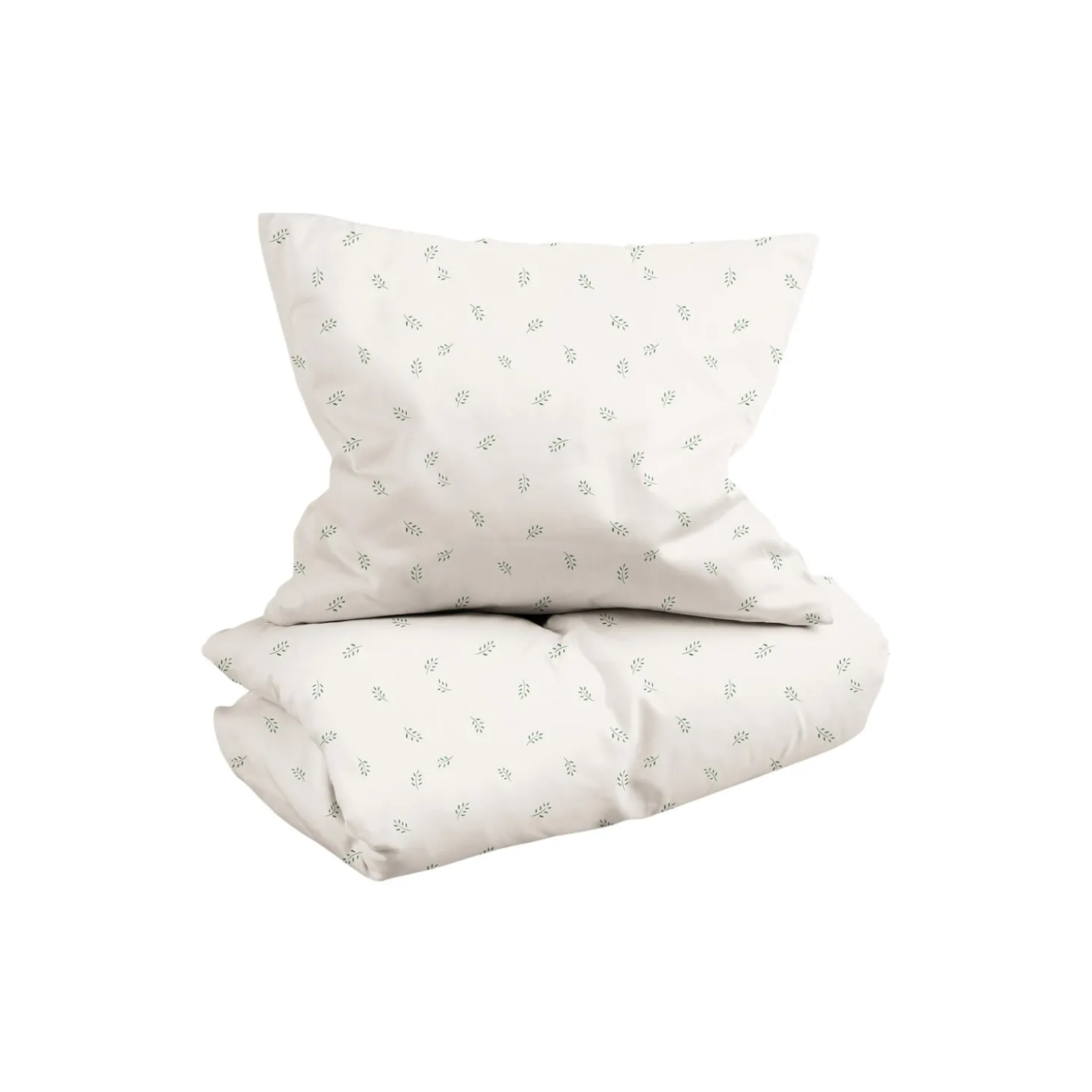 Percale Babysengetøj fremstillet af certificeret økologisk bomuld i Sebra-designet, Sophora Leaves.