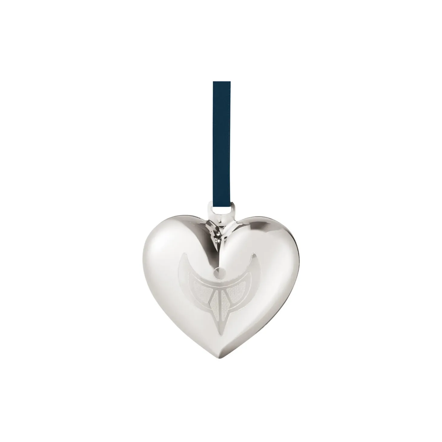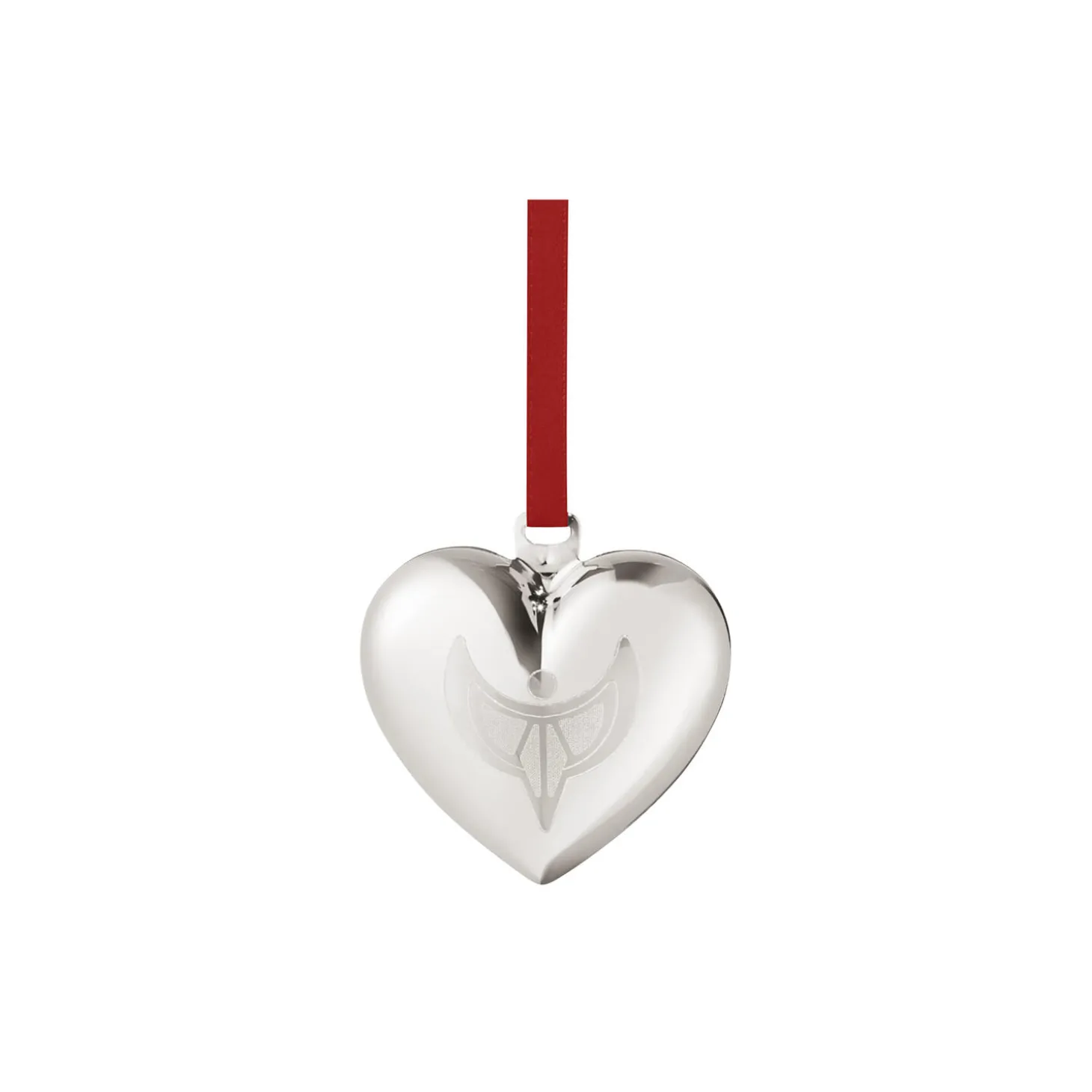 Dette elegante, palladiumbelagte hjerte er fra 2024 Julekollektionen, som Sanne Lund Traberg har designet for Georg Jensen. Sanne Lund Traberg har samarbejdet med Georg Jensen gennem mange år, og det hjerteformede ornament indfanger den nostalgiske elegance, som kendetegner hendes designstil. Julehjertet er indgraveret med et smukt englemotiv og hænger i et flot, rødt bånd.