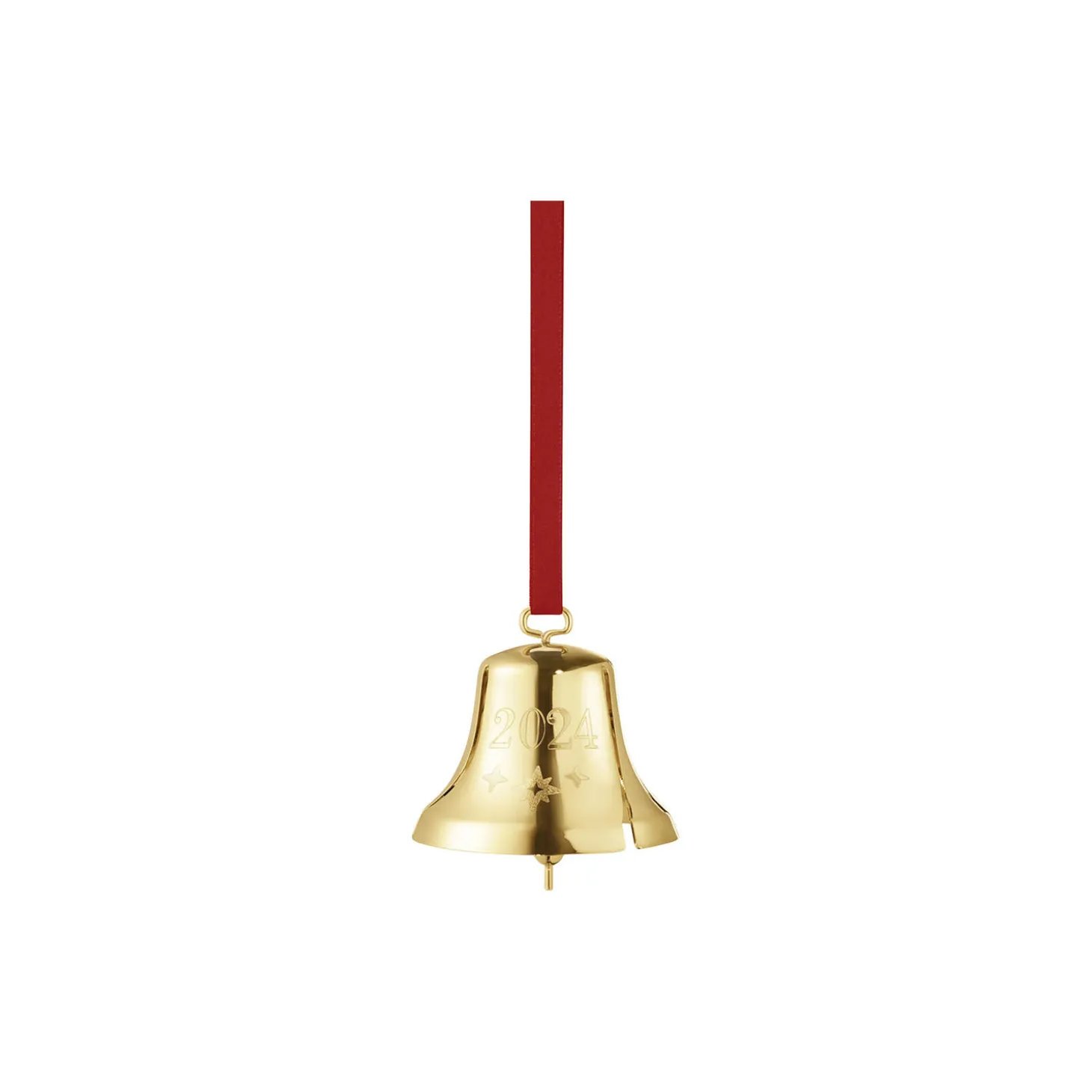 Denne funklende, guldbelagte klokke fra 2024 Julekollektionen er et flot og festligt ornament til juletiden. Juleklokken er designet af Georg Jensens mangeårige samarbejdspartner Sanne Lund Traberg, som har fornyet det traditionelle juleklokke-design med fine detaljer og et elegant, rødt bånd.