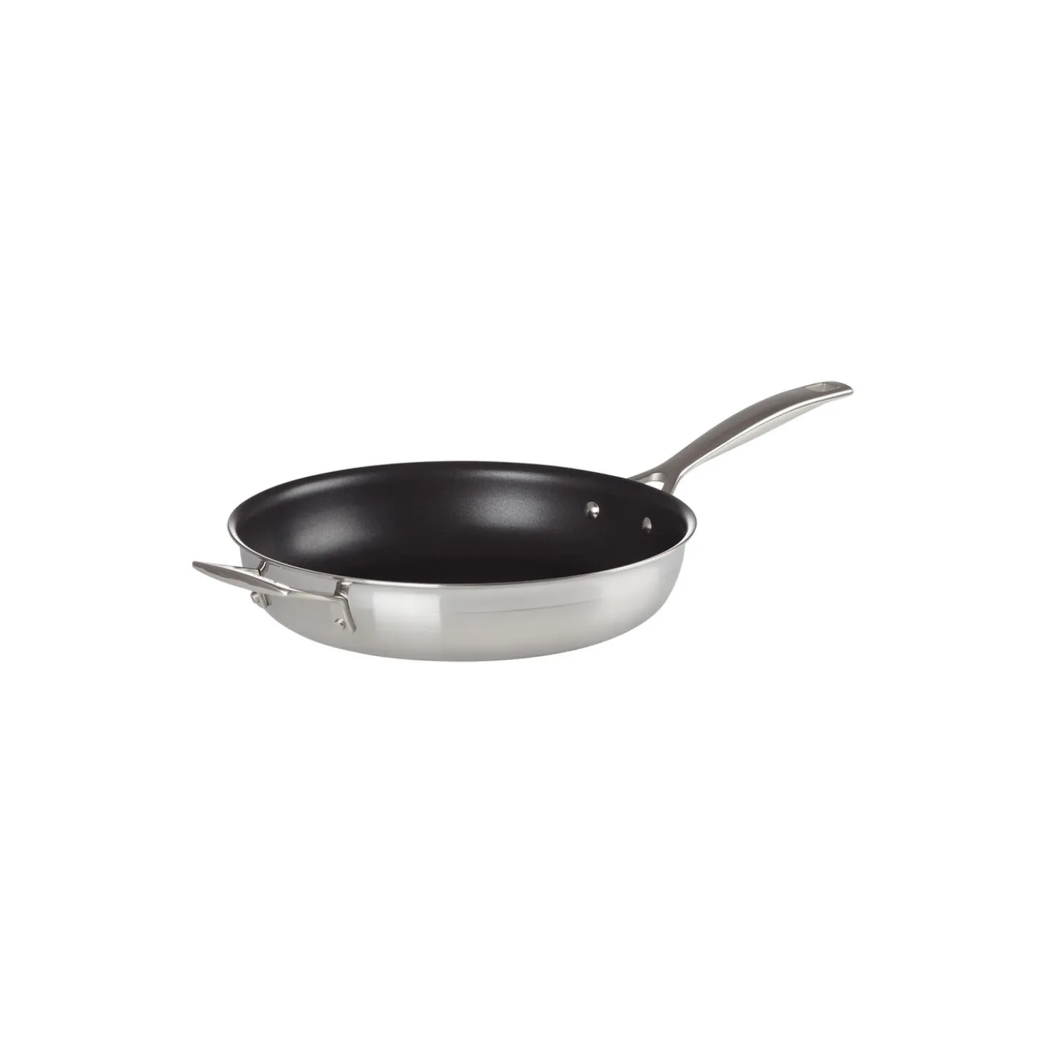 Med denne non-stickstegepande i 3-ply, rustfrit stål kan du trygt lave mad. Den er slidstærk og holdbar. Dette robuste, alsidige produkt er også perfekt til sundere madlavning på grund af non-stickbelægningen, som nemt slipper maden. Opbygningen i flere lag tilbereder maden nænsomt og jævnt og giver perfekte resultater.