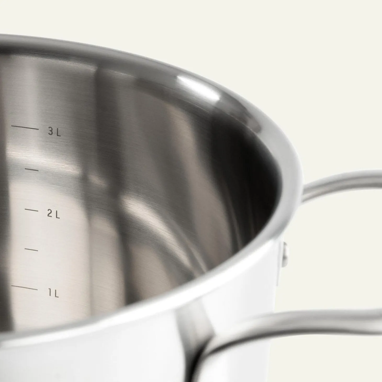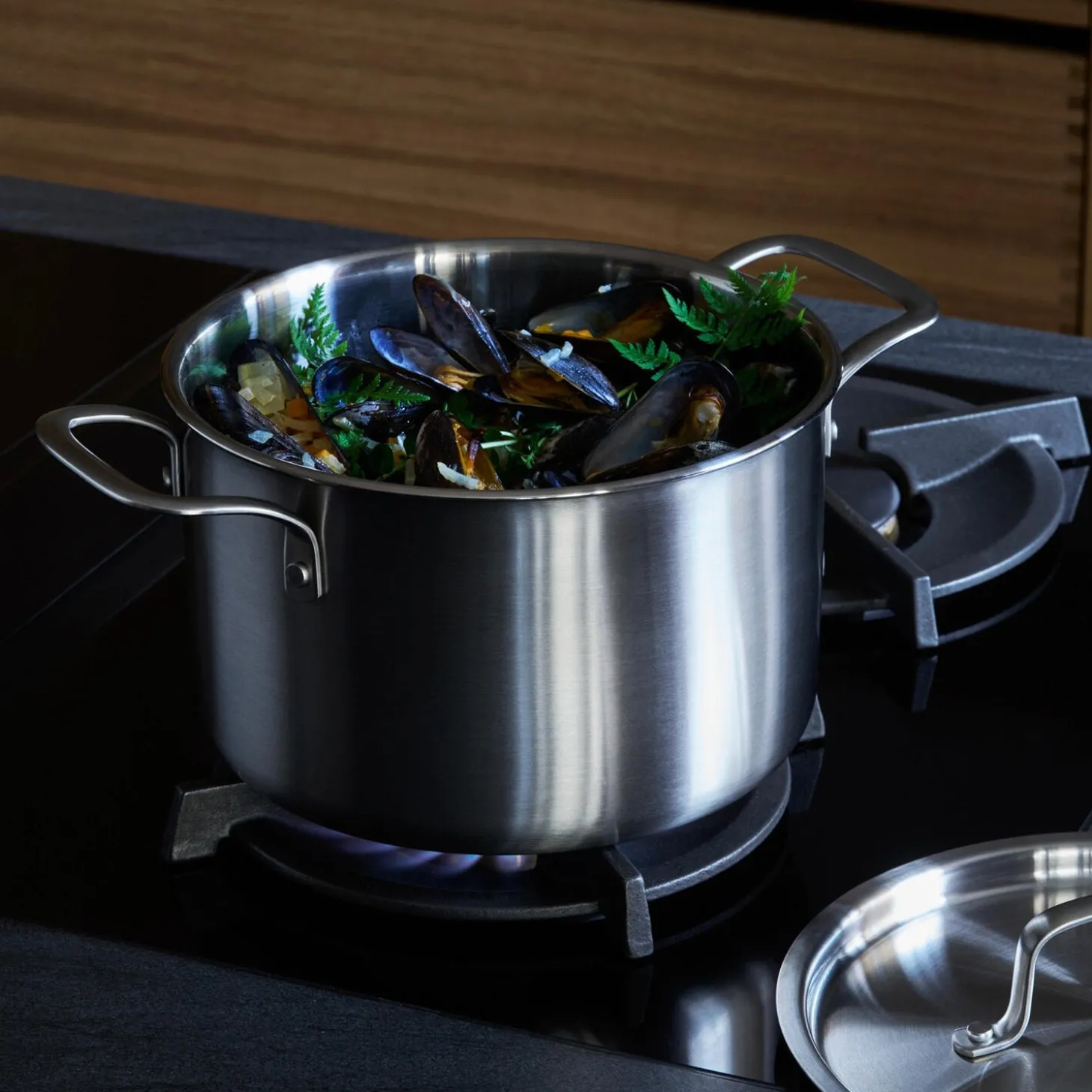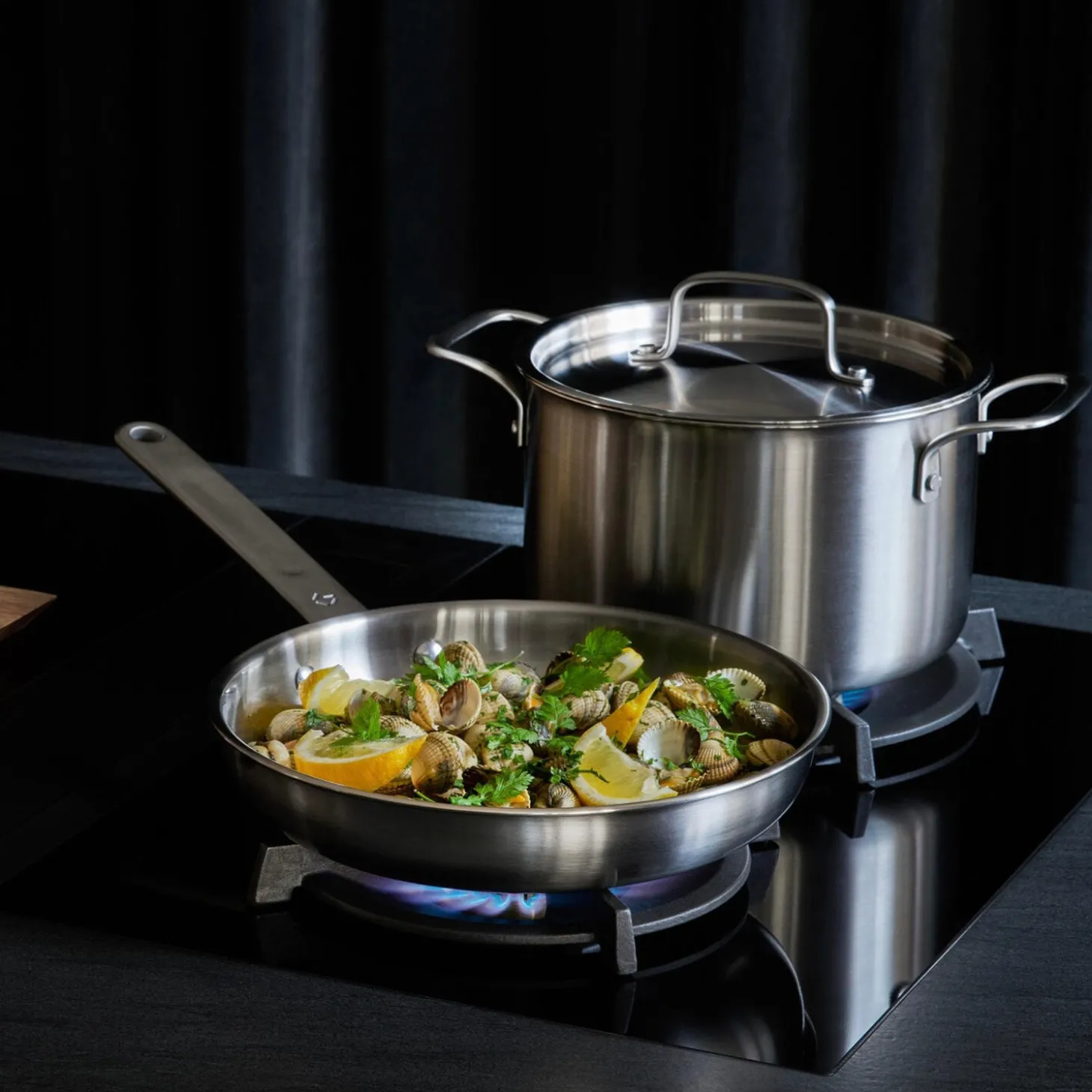 Gryde i 5-lags konstruktion produceret i Italien. Kan gå i ovn op til 430 grader. Optimeret til induktion. Virker på alle varmekilder.