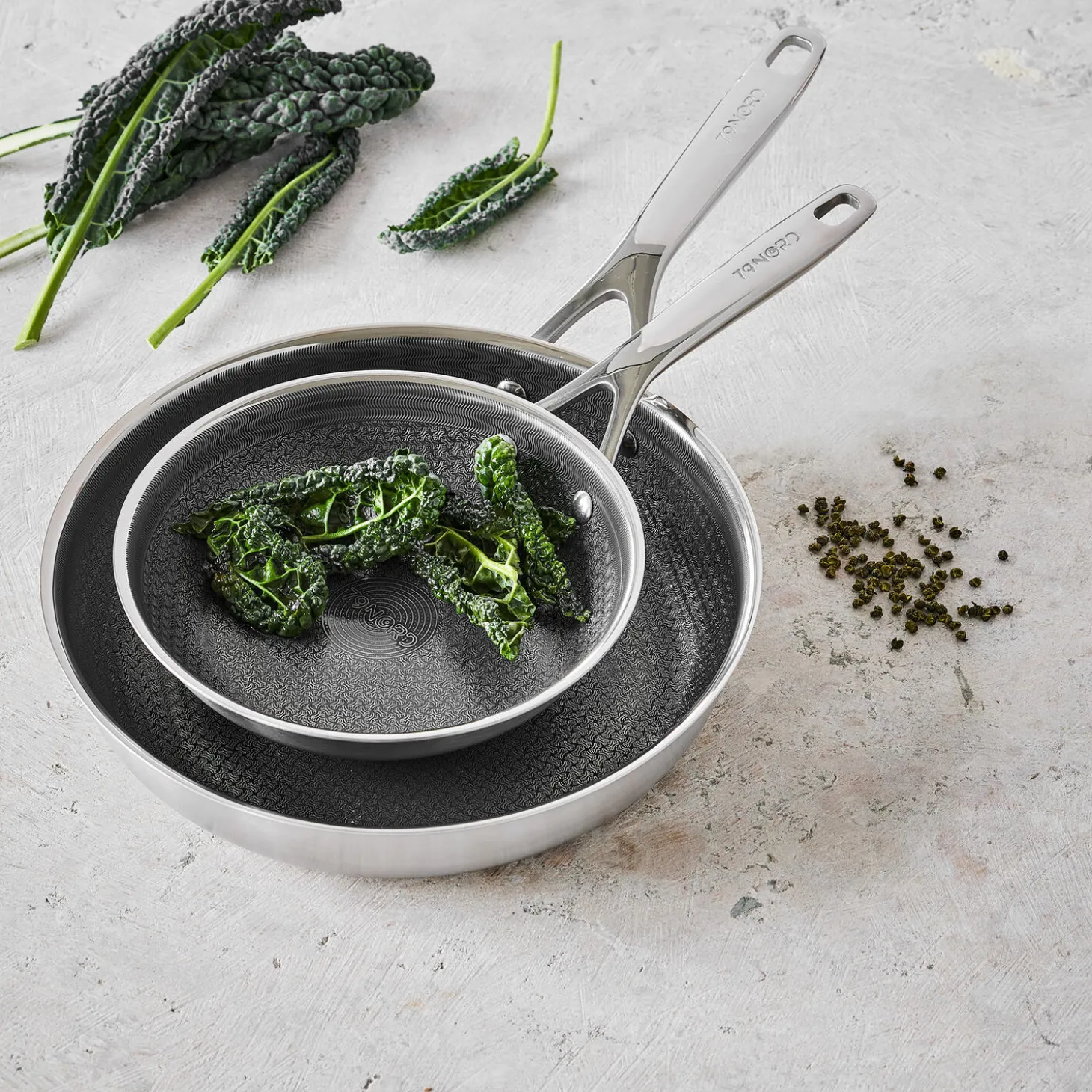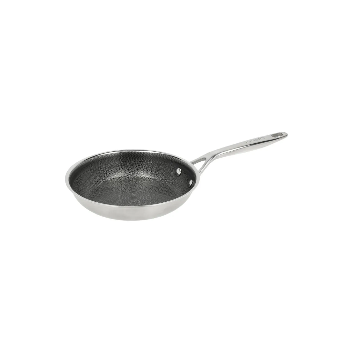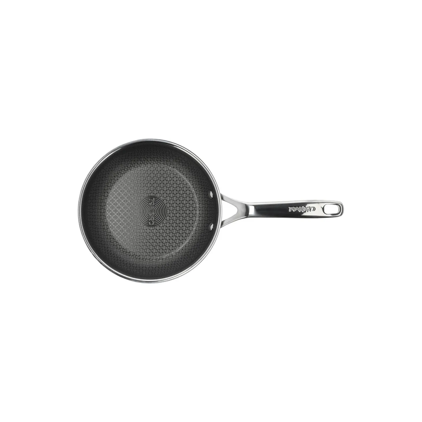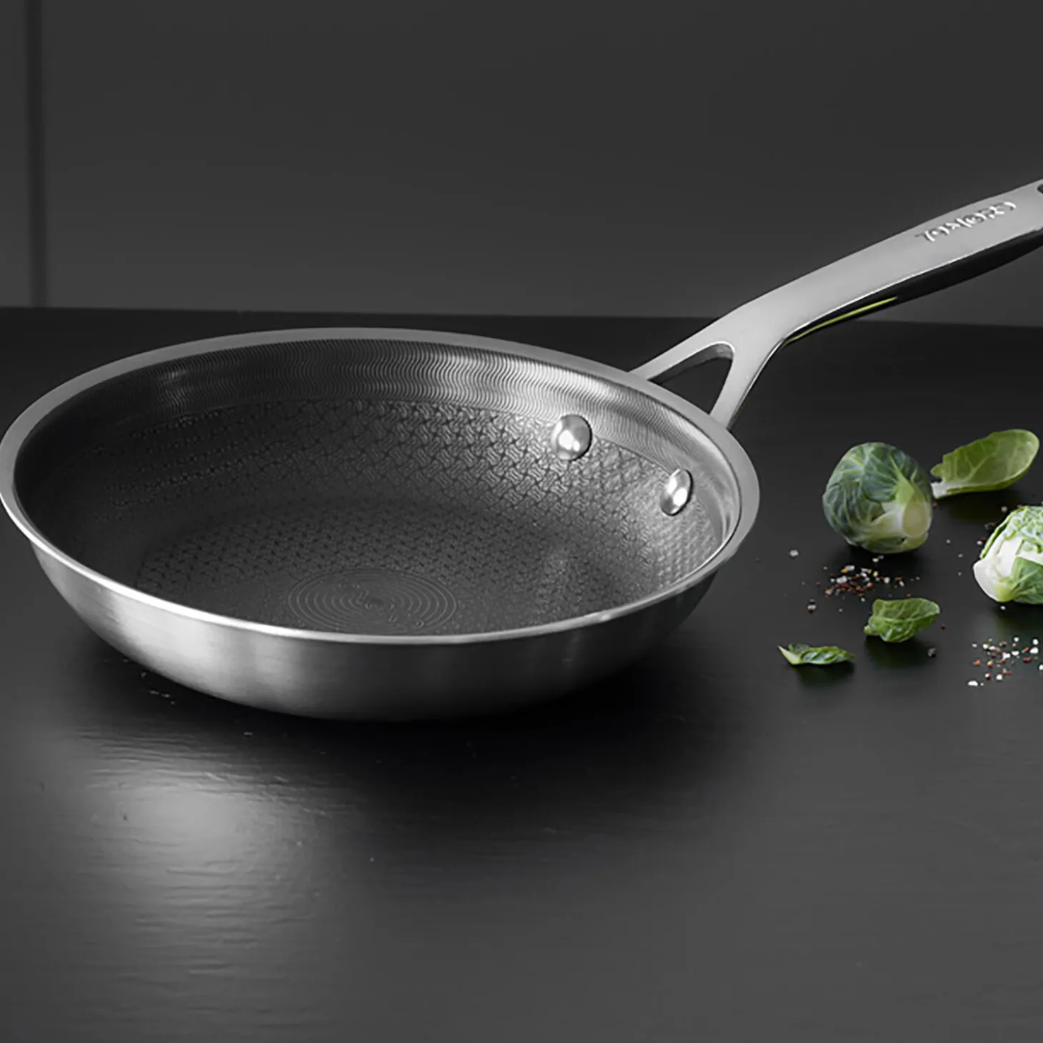 79Nord Hybrid er fremstillet af 3-ply rustfrit stål. Konstruktionen af to lag stål med et aluminiumlag imellem betyder, at varmen fordeles hurtigt og fastholdes jævnt og energieffektivt over både bund og sider, og samtidig er materialet let. Udvendigt er gryder og pander satinpolerede, indvendigt har de en innovativ hybridbelægning. Hybridbelægningen er en kombination af et forhøjet mønster i rustfrit stål og en 2-lags keramisk belægning, produceret uden PFAS. Det forhøjede mønster beskytter belægningen i bunden, og den keramiske topcoating giver non-stick-effekten. Hybridbelægningen er nem at rengøre, og alle typer redskaber kan bruges på belægningen, men vi anbefaler redskaber af træ, plast eller silikone. Inspirationen til mønsteret i hybridbelægningen kommer fra havet omkring øen Mors, fra ringe i vandet, der breder sig hurtigt og ustoppeligt.Håndtag og greb er af støbt stål. Vær opmærksom på, at de kan blive meget varme.79Nord Hybrid-produkterne kan bruges på alle varmekilder, også induktion. De kan desuden anvendes i ovn, med låg op til 200 °C, uden låg helt op til 260 °C. Produkterne er velegnede til vask i opvaskemaskine, og vi anbefaler, at de også vaskes før første brug.