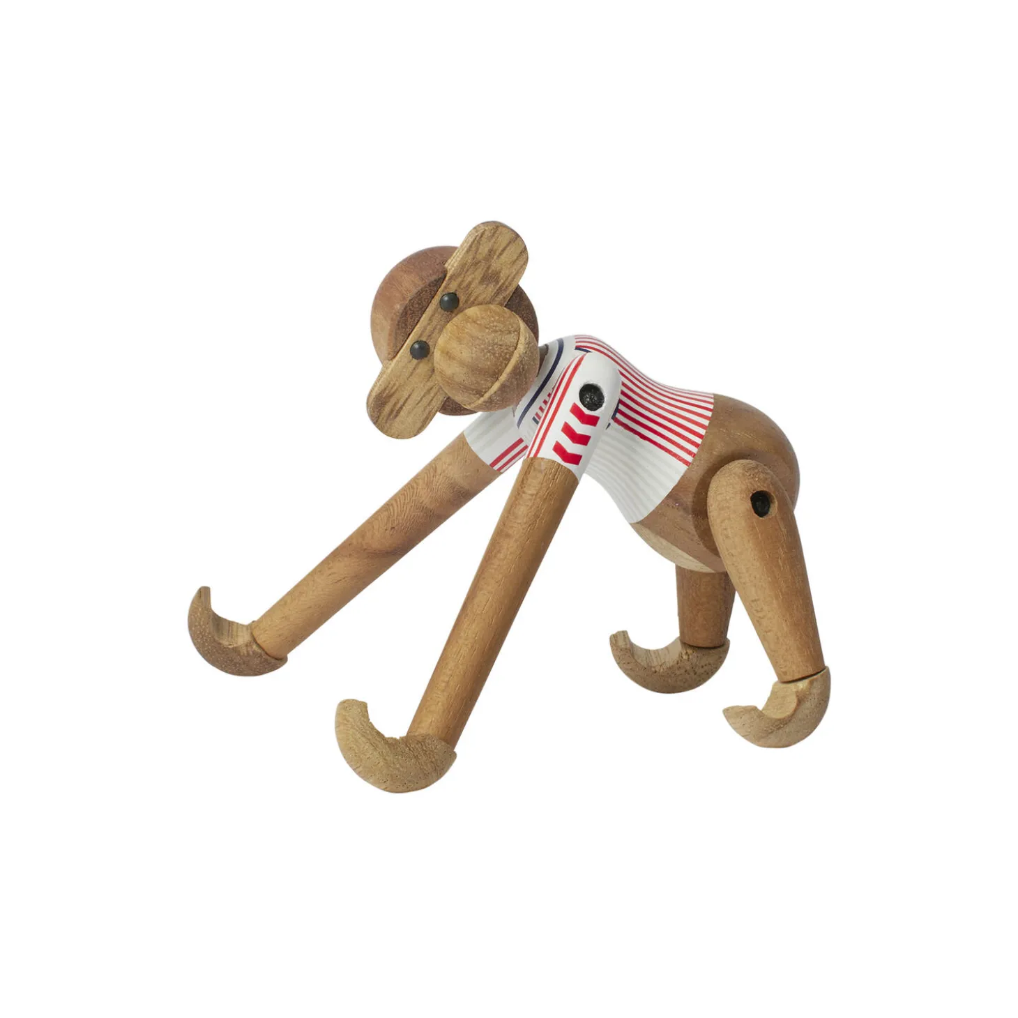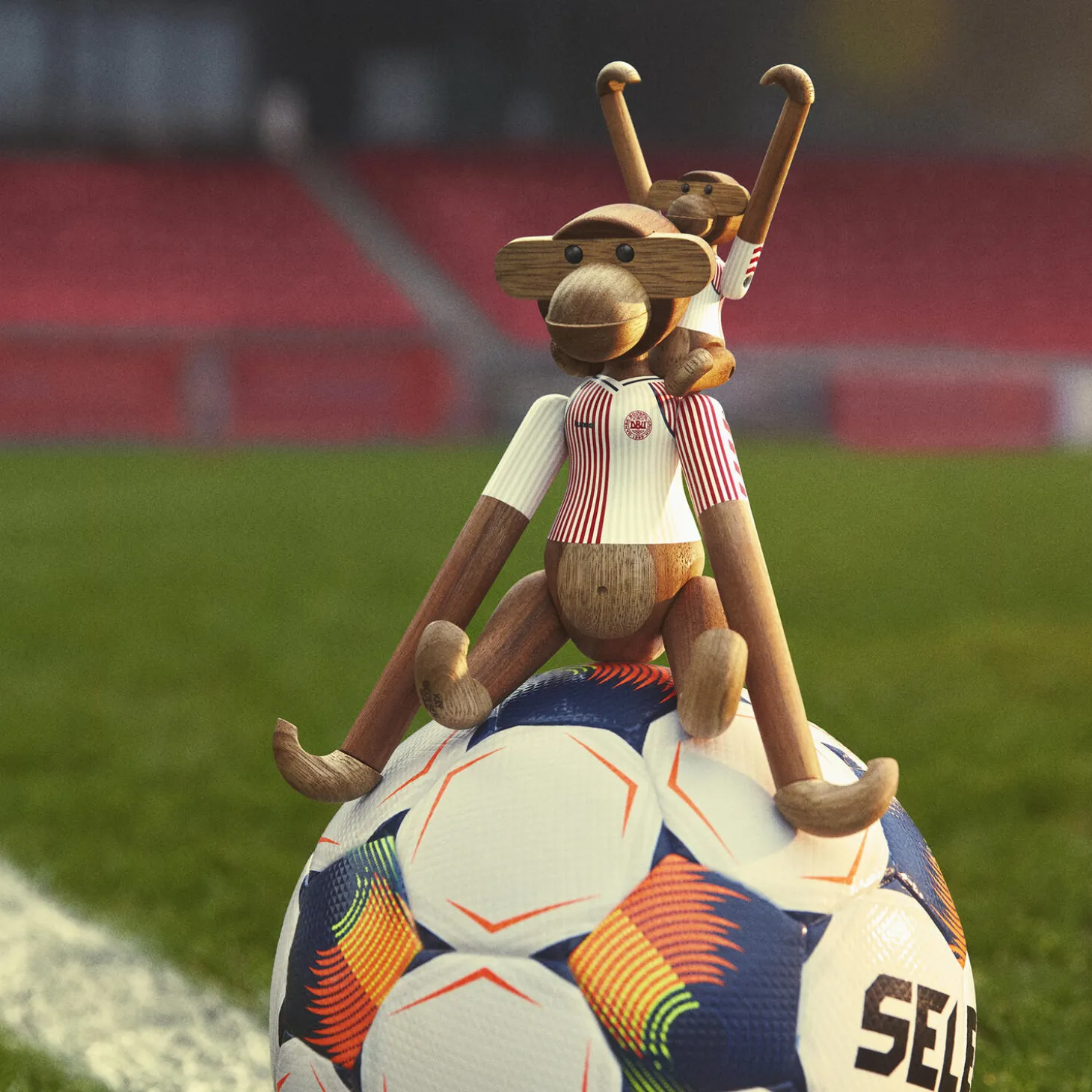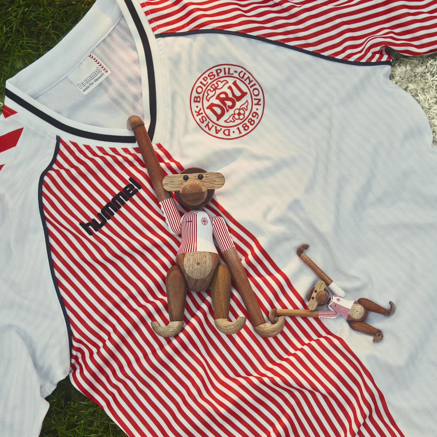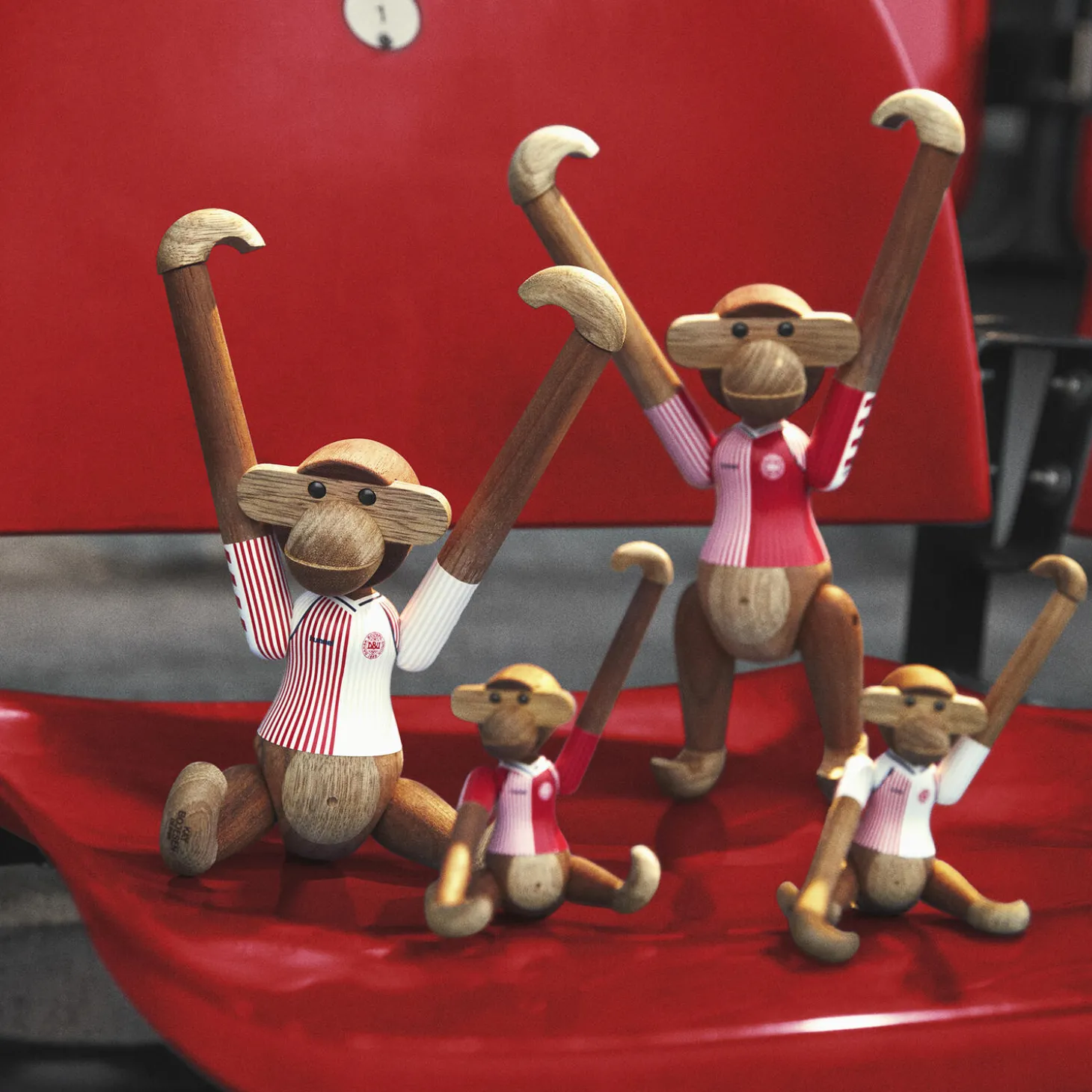 Ny holdkammerat til alle i rødt og hvidt. Med Kay Bojesen Abe x DBU er to af de største danske nationalikoner gået sammen for med humor, kreativitet og det gode håndværk at hylde sammenholdet og stoltheden over at stå sammen side om side fra leg til landshold. Og i 2025-udgaven af Kay Bojesen Abe x DBU tager vi sammen et nostalgisk skridt tilbage i tiden i en mindeværdig fejring af den ikoniske danske fodboldtrøje fra epoken omkring VM-slutrunden i Mexico i 1986. Du husker sikkert trøjen karakteriseret ved sit enkle og alligevel meget genkendelige todelte design med tætte striber i to forskellige kontraster, hvor den ene side næsten virker fuldfarvet med striber i samme farvenuance, mens den anden side har en mangfoldighed af tynde røde og hvide striber. Lige præcis den retrotrøje der altid vil fremkalde uforglemmelige minder om Herrelandsholdets gennembrud på den internationale scene. Et værdsat symbol for både fodboldfans og designentusiaster. Trøjedesignet er skabt af hummel, og for mange danskere repræsenterer denne enestående fodboldtrøje ikke bare en hyldest til en svunden tid. 86-trøjen er også en forbindelse til den nationale identitet og stolthed, som mange oplevede, fordi VM i Mexico var en skelsættende turnering for Danmark, hvor Herrelandsholdet i den grad trådte ind med et varigt aftryk på fodboldens verdenskort. Derfor fungerer trøjen også som et symbol på fællesskab og national stolthed, der bringer mennesker sammen i deres kærlighed til sporten – og hinanden. Lige nøjagtig det som samarbejdet mellem Kay Bojesen og DBU handler om, nemlig vigtigheden af at bevare og fejre dansk kultur og historie, samtidig med at fans – både fodboldfans og designfans – får mulighed for at få del i et eksklusivt stykke af denne arv ved at lade et måske endnu mere verdensberømt ikon inden for dansk design bære den med stolthed. Kay Bojesen Abe x DBU med denne fuldstændig legendariske landsholdstrøje produceres kun i 2025. Og når nu det er selveste Kay Bojesen Aben, der tager den på, så gør det jo heller ikke noget, at 86-trøjen i fodboldkredse fortsat anerkendes som en af de flotteste fodboldtrøjer nogensinde og har vundet flere internationale priser som en af fodboldhistoriens mest ikoniske trøjedesigns. Du kan få Kay Bojesen Abe x DBU i 2025-versionen i to størrelser. Du bestemmer selv, om det skal være denne miniudgave på 9,5 cm i højden eller den lidt større fodboldfan på 18,5 cm, som du inviterer indenfor – eller måske dem begge. Såvel mini som lille er de iklædt Herrelandsholdets flotte 86-udebanetrøjer malet med stor omhyggelighed og påført med print med største præcision ned til de mindste detaljer, så trøjedesignet står så tæt som muligt på originalen og smukt fortolket i tråd med figurhistorien med det autentiske og gennemarbejdede udtryk fuld af den sjæl og humor, der altid har været udgangspunktet for Kay Bojesens unikke håndværk og historiefortælling. Begge størrelser kommer i det klassiske mix af FSC®-certificeret teak og kontrolleret limbatræ. Med det fortsatte samarbejde med DBU videreføres Kay Bojesens originale fortællinger i træ med et nyt kapitel om fodbold og fællesskab, der ydmygt og med et glimt i øjet skriver videre på en legendarisk og spillevende designarv.