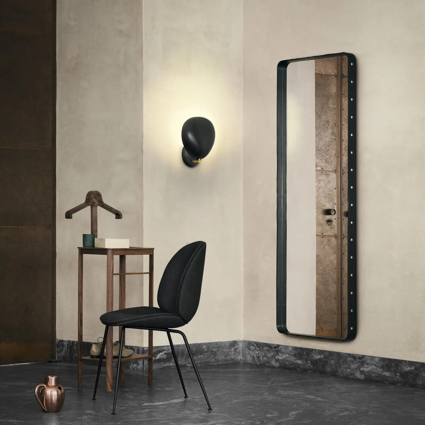 - Materiale: læder og spejlglas