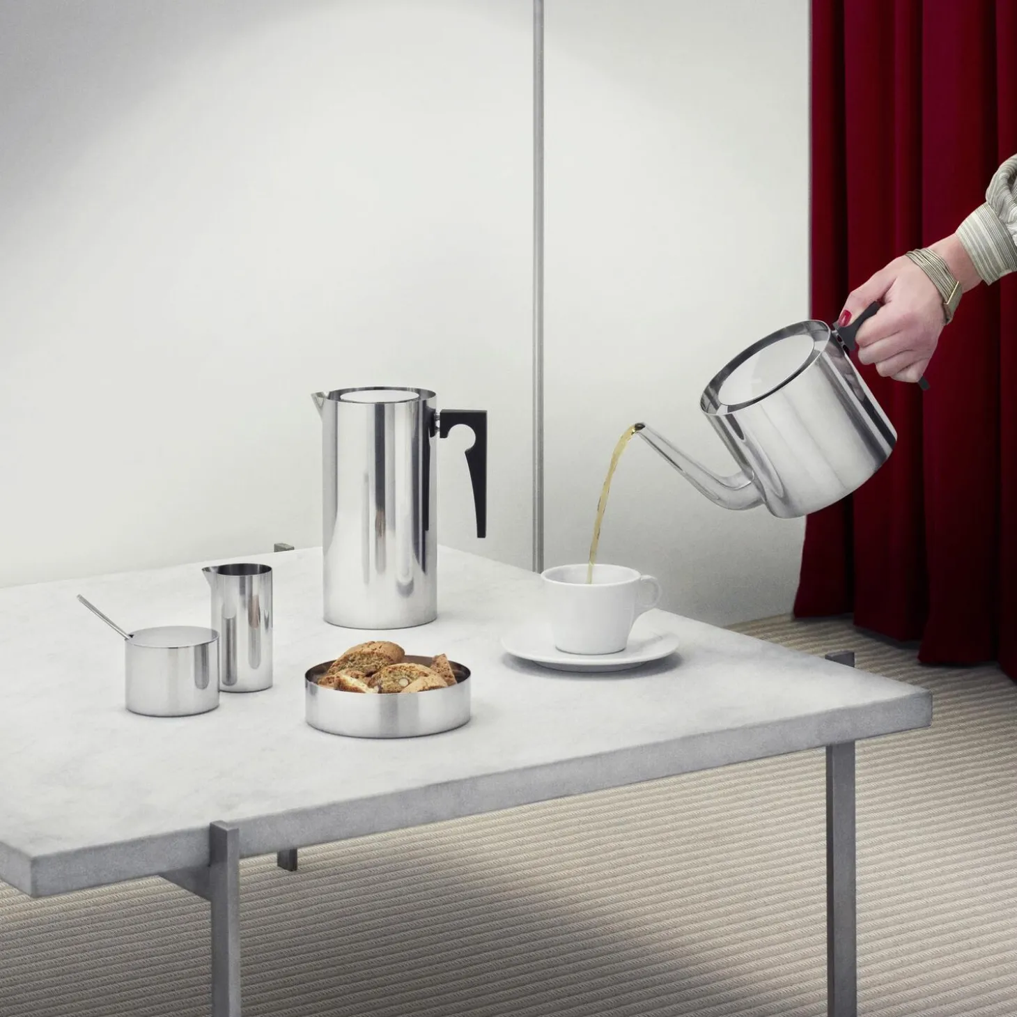 Arne Jacobsens klassiske tekande fra 1967 er blandt de første designs i Cylinda-line serien. Tekanden på 1.25 l. er i rustfrit stål med et karakteristisk håndtag i bakelit. Designet er kompromisløst og på forkant med sin tid, hvilket hurtigt gjorde kanden til et ikon. AJ tekanden har et stilrent formsprog og design, som holder årti efter årti.