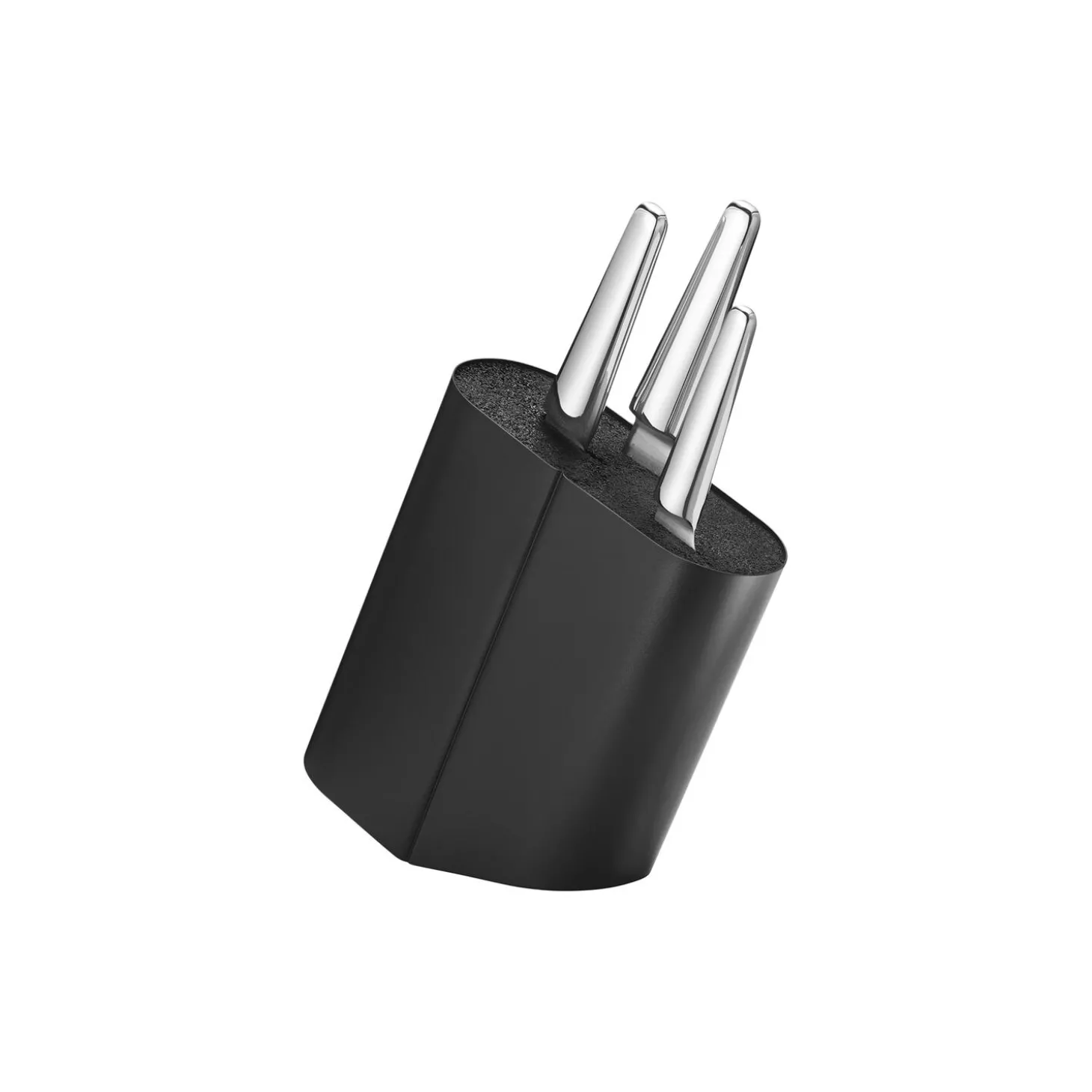Denne knivholder fra Alfredo kollektionen er fremstillet i rustfrit stål og har en elegant finish i mat sort – det perfekte design, som både er praktisk og skabt til at vare ved. Designet kan opbevare dine køkkenknive takket være de sorte fiberstænger, som holder knivene ordentligt og sikkert på plads. Knivholderen kan rumme op til fem knive (op til 22 cm i længden) og passer perfekt til knivene fra Georg Jensens Sky kollektion. Fiberstængerne kan også nemt tages ud og vaskes.