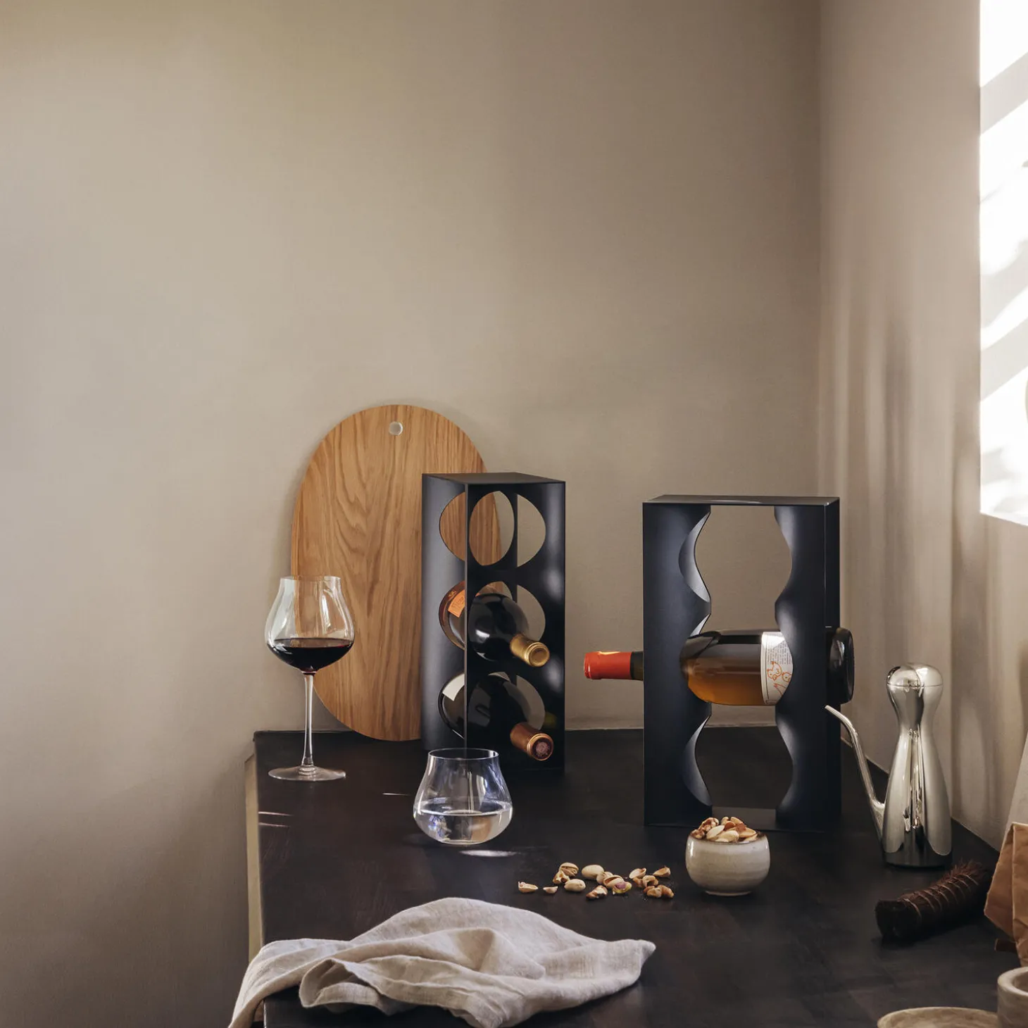 Præsentér dine favoritvine i denne elegante vinreol fra Alfredo kollektionen, som er fremstillet i let rustfrit stål og overtrukket med en sort farve. Vinreolen rummer op til tre flasker, og den kan både placeres vertikalt og horisontalt i køkkenet eller spisestuen. Den er ikke designet til at blive stablet og kan ikke monteres på væggen.