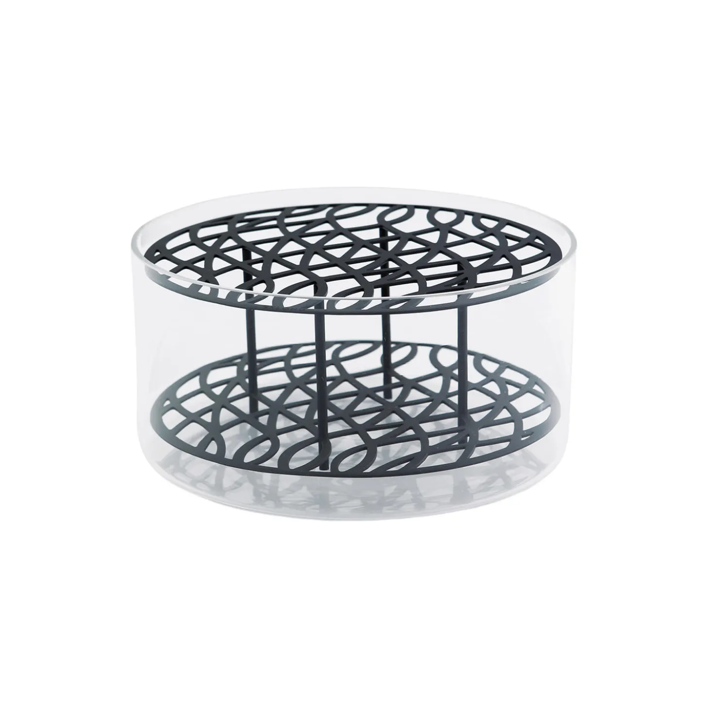 The idea of Äng is to give each individual flower support to stand by itself. The vase has a metal insert with a beautiful pattern, which makes it a piece of art. The structure lets the flowers fall into place and create a nice and organized flower decoration. The vase is mouth blown clear glass from Böhmen, Czech Republic and the insert is available in brass, black, blue/green and silver plated.