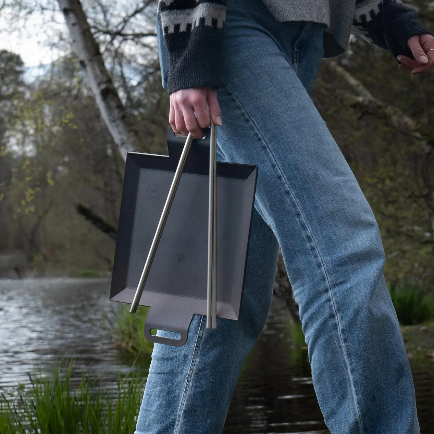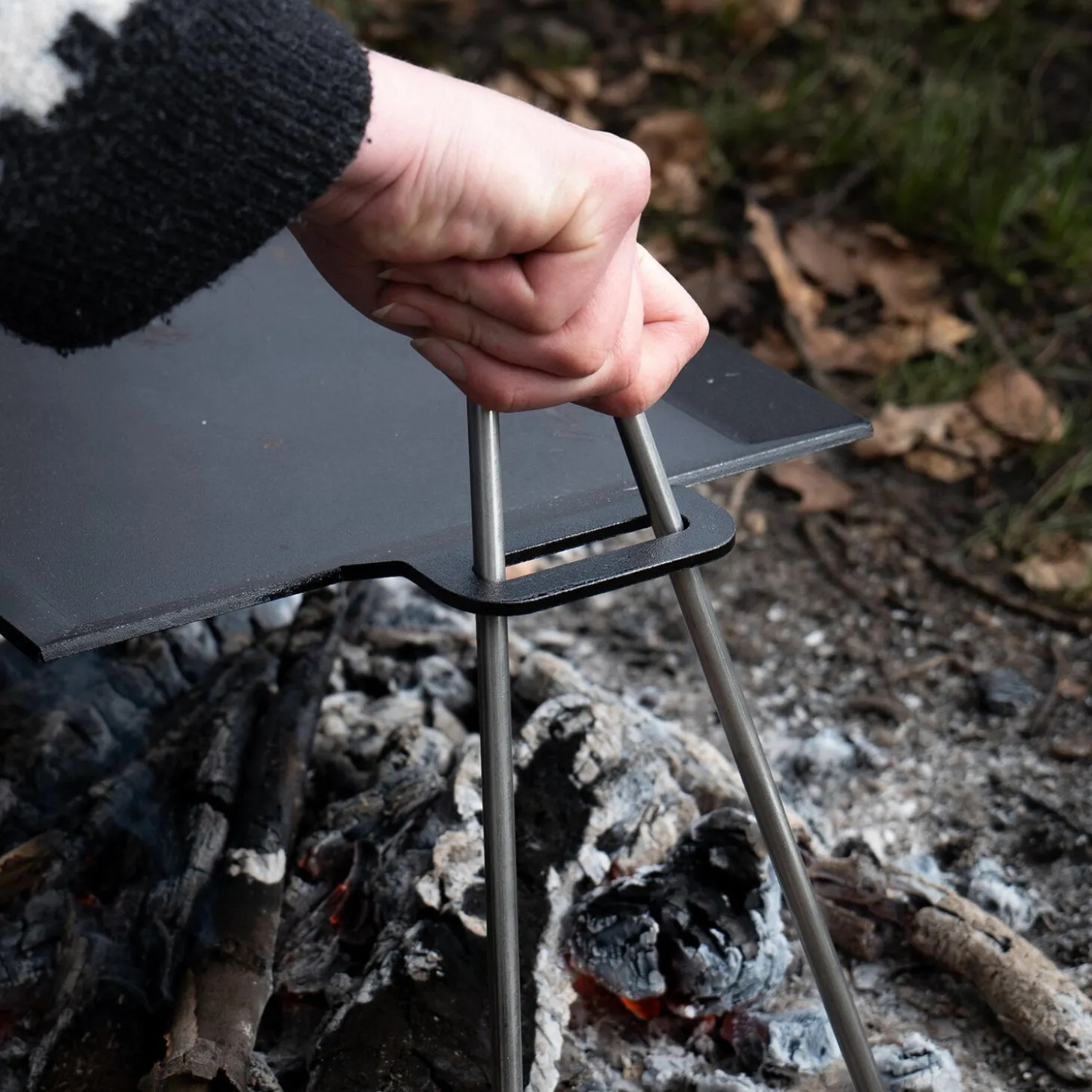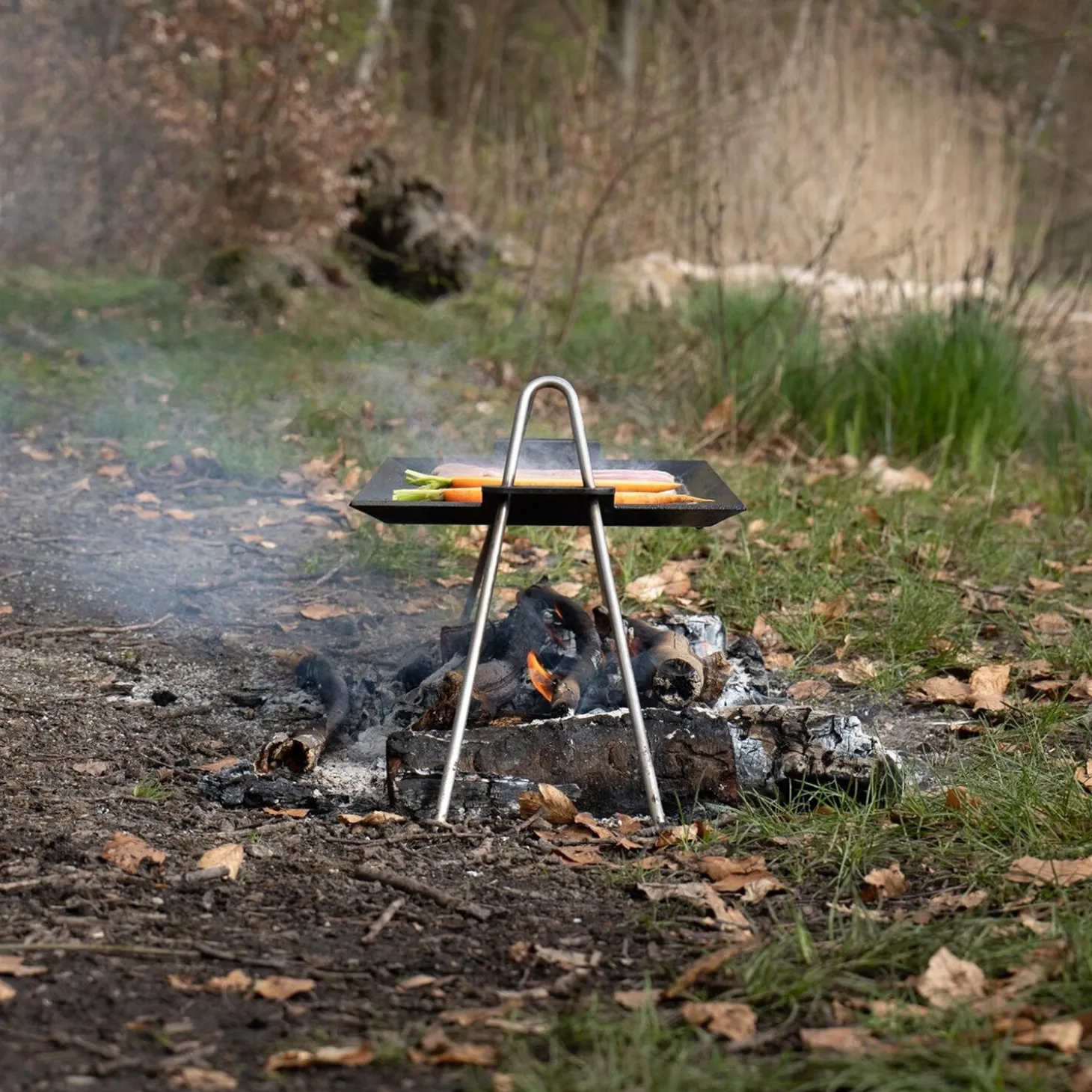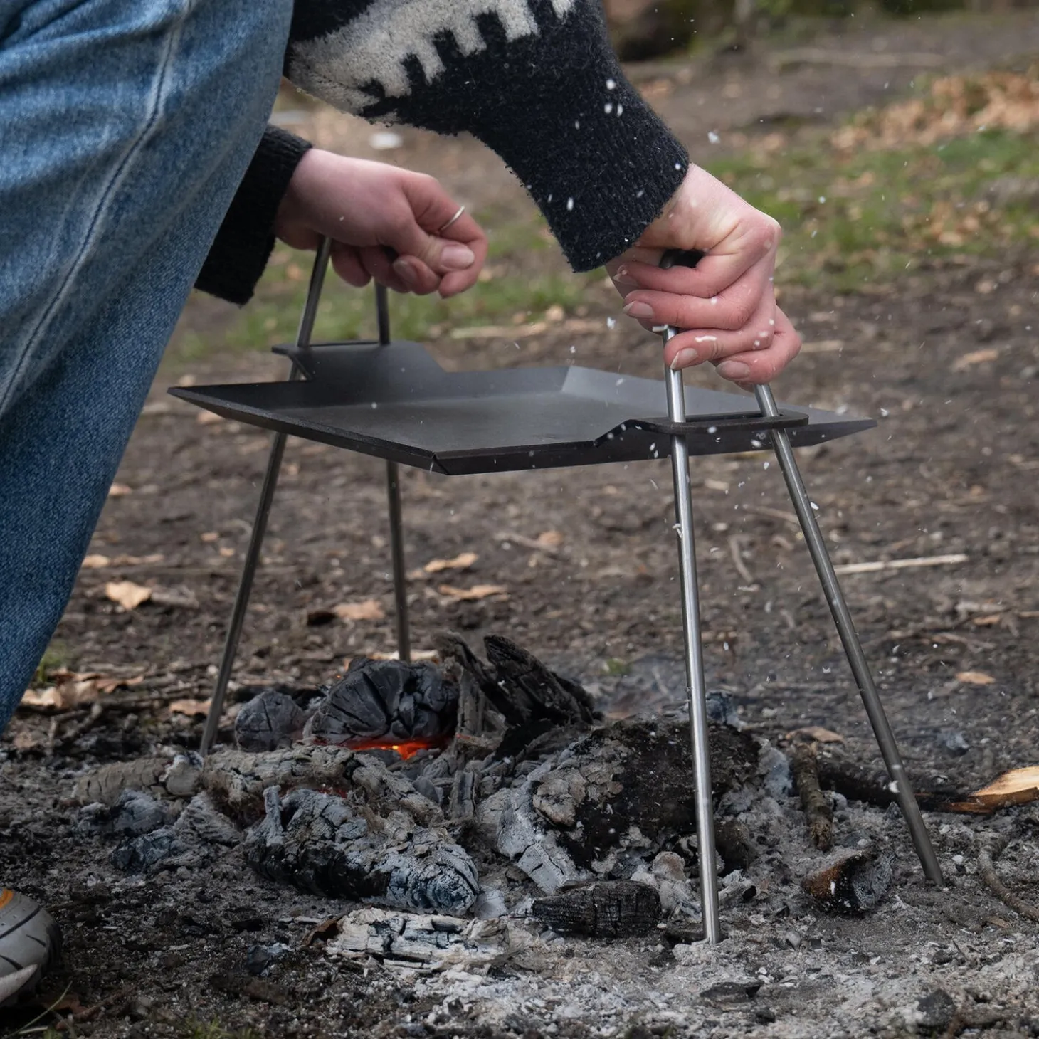 Tag din stegeplade fra Gastrotools med dig overalt og lav mad, hvor du vil. I hjørnet af baghaven, ved et shelter eller i en lysning i skoven? Med stegeplade og bålstativ under armen kan du skabe lækre madoplevelser alle steder. Uanset om du har den lille eller store stegeplade, passer bålstativet perfekt til. Bålstativet er produceret i Sverige og kan nemt pakkes ned og tages med på farten takket være det lette og funktionelle design. Bålstativet er let at vedligeholde, da det tåler opvaskemaskine, og så er det skabt til at holde en livstid med den stærke konstruktion i rustfrit stål. Det er simpelt at gå til: Sæt bålstativ og stegeplade op, tænd dit bål, og begynd madlavningen.