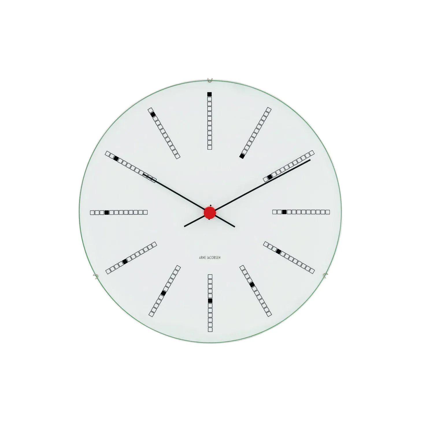 Da Arne Jacobsen skabte væguret Bankers Clock til Danmarks Nationalbank i 1971, skabte han samtidig et designikon til boligen. Væguret findes i 4 størrelser og produceres den dag i dag tro mod de originale tegninger. Dette vægur på 16 cm er det mindste og passer fint på et smalt stykke væg i køkken, soveværelse eller badeværelse. Urkassen, der holder den konkave glasfront, giver uret et svævende udtryk på væggen. Den utradionelle illustration af timerne gør uret til sit helt eget. Også en god gaveide til bryllup, jubilæum, fødselsdag, studenten og andre særlige anledninger.