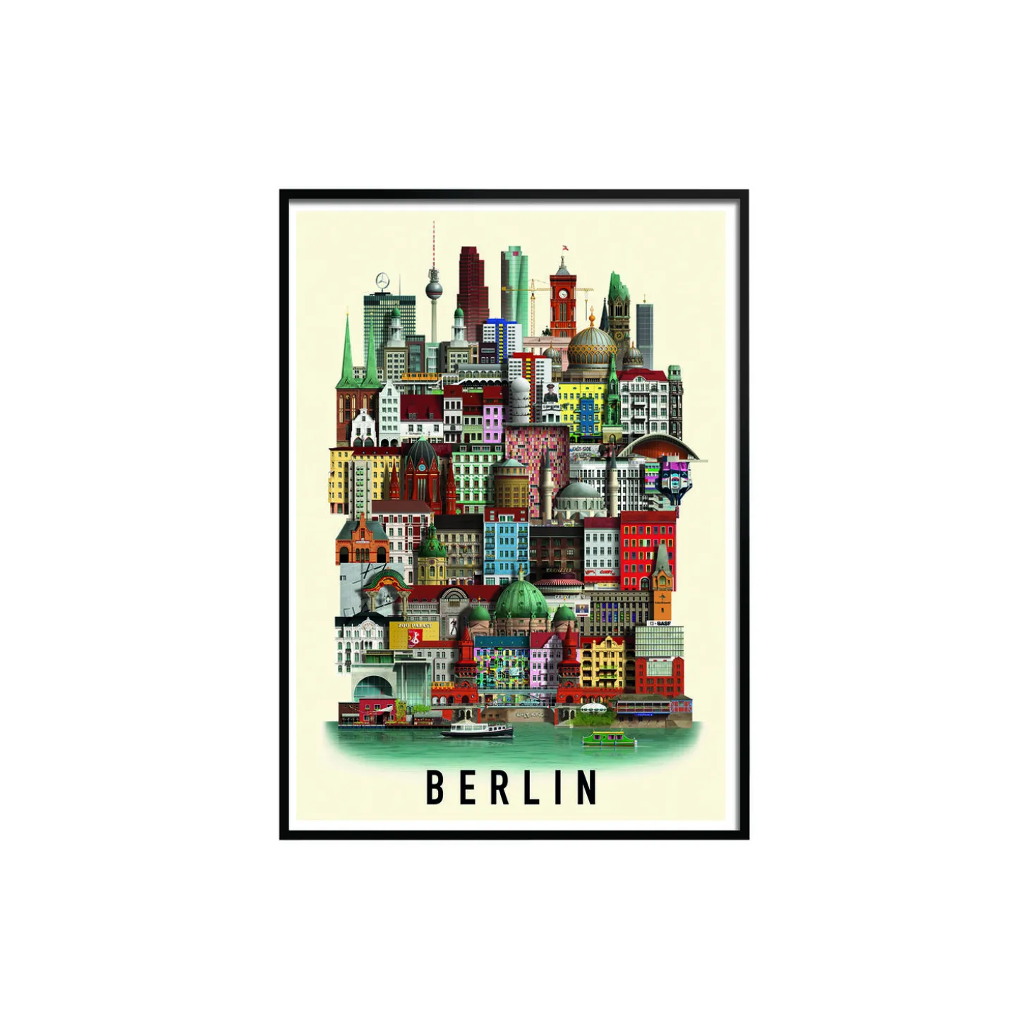 Berlin plakat trykt på papir fra Martin Schwartz. Farve: multifarvet. Størrelse: A3. Ramme er ikke inkluderet.