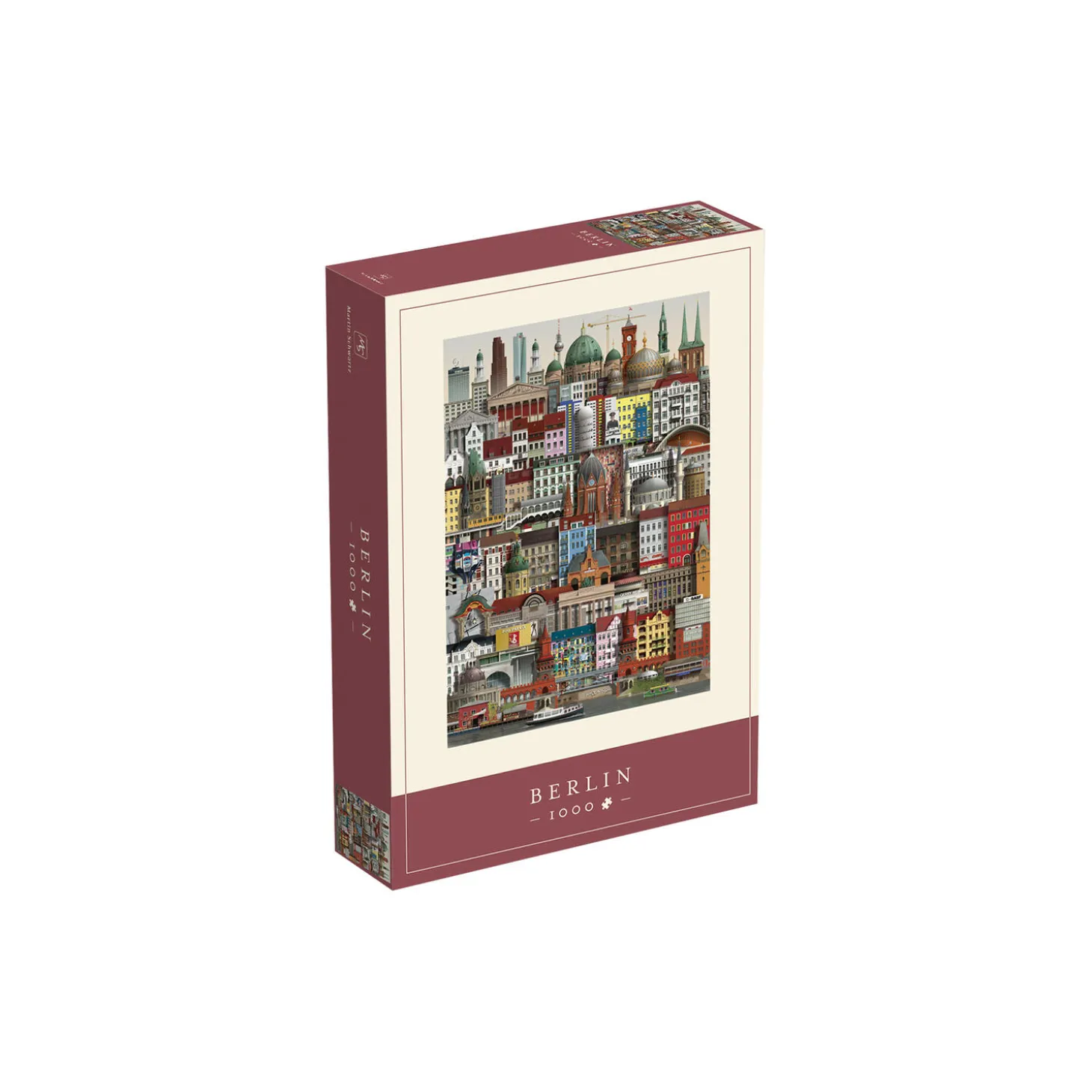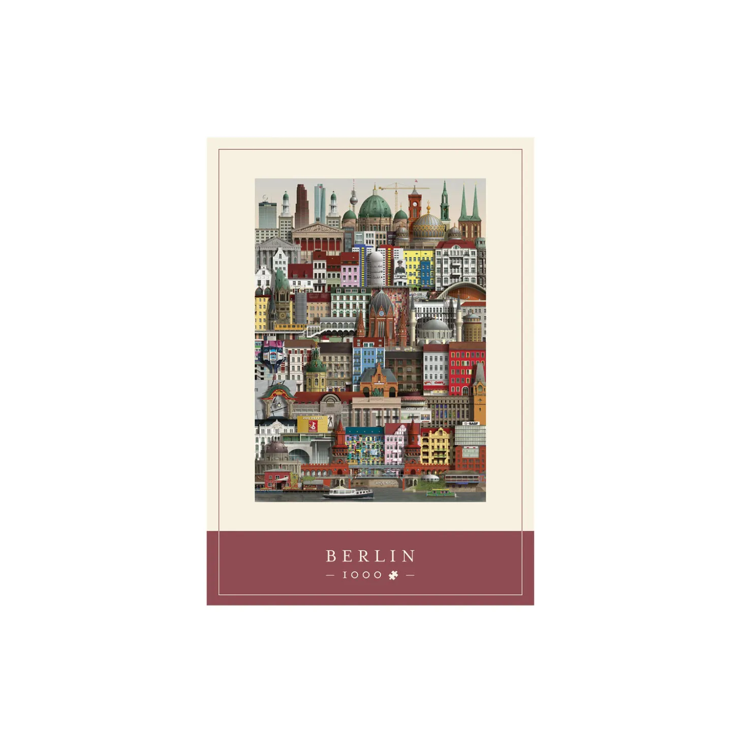 Berlin puslespil trykt på pap fra Martin Schwartz. Farve: multifarvet. Mål: 50×70 cm. Antal: 1000 brikker.