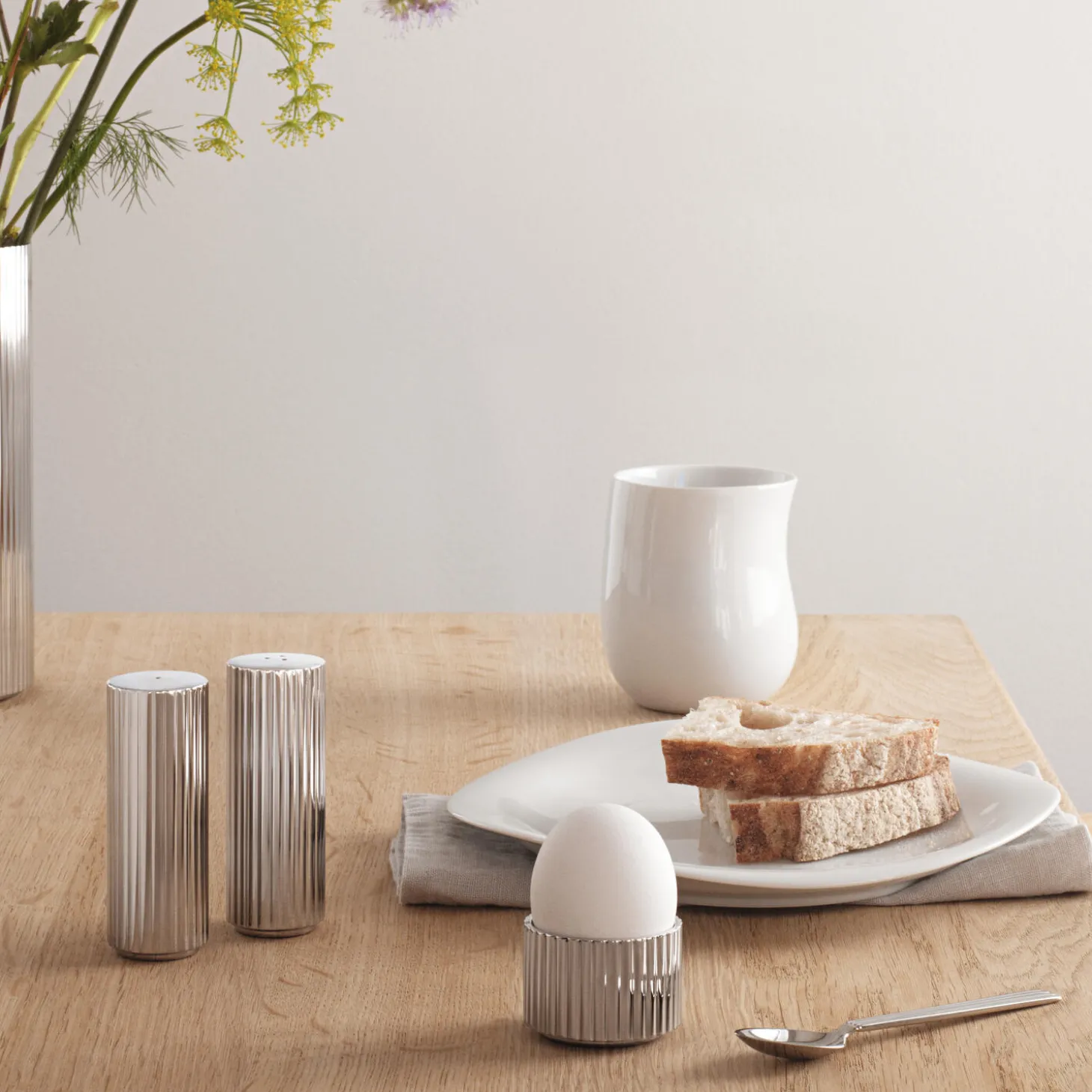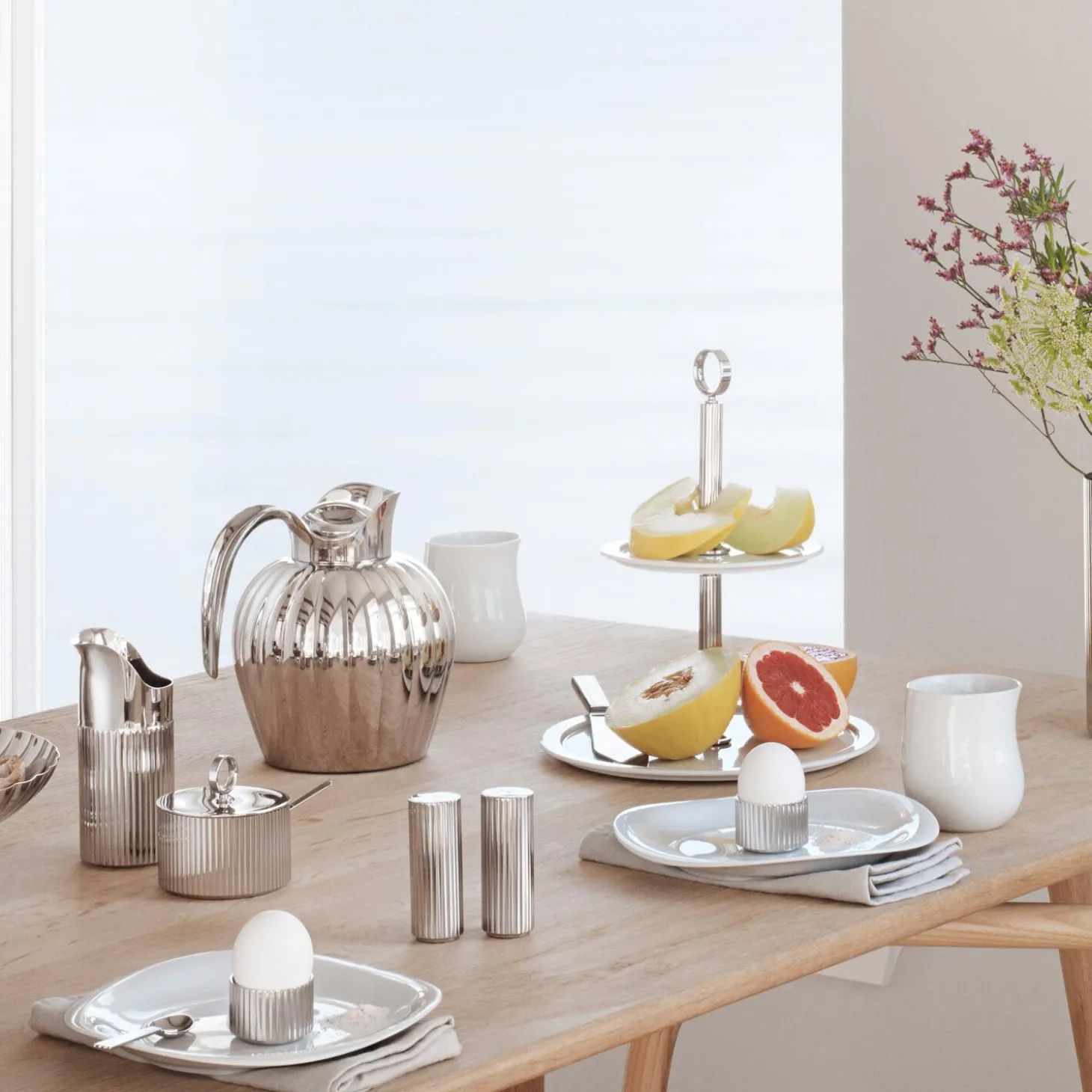 Opgradér dit morgenbord til luksusklassen med de elegante æggebægre i to-pak fra Georg Jensens Bernadotte-kollektion.
