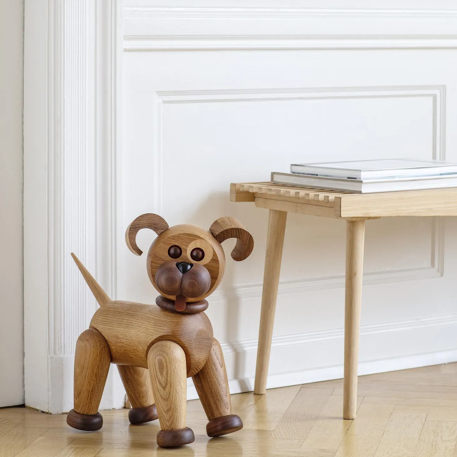 Big Happy er en hyldest til menneskets bedste ven. Den er lavet af egetræ og ask – og til tungen er der brugt læder. Som med Chrestens Sommers andre design er der lagt vægt på at gøre Big Happys udtryk sødt og mildt. Designet gør det muligt at skabe nye udtryk, og derfor får du med Big Happy ikke bare en ny bedste ven, men også et design, du løbende kan personalisere, så udtrykket er unikt for dit hjem.