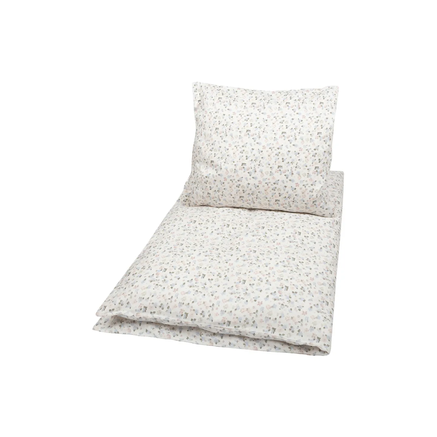Lækkert blødt sengetøj i blød vævet økologisk bomuld. Trykknap lukning på både pude og dyne. Dyne mål: 70×100 cm Pude mål: 40×45 cm Pakket i en stofbærepose. 100% vævet bomulds satin (GOTS Organic Certified by Ecocert Greenlife Lic. No. 151714). Produktet er GOTS organic- certificeret, hvilket betyder at bomulden er certificeret økologisk, og at der i alle andre processer som farvning, strikning og syning er taget de strengeste hensyn til miljøet. GOTS er internationalt anerkendt som den førende standard for forarbejdning af tekstiler af økologisk bomuld. Derudover tages der også hensyn til arbejdsforholdene, hos dem der producerer tøjet. Økologisk bomuld 100%