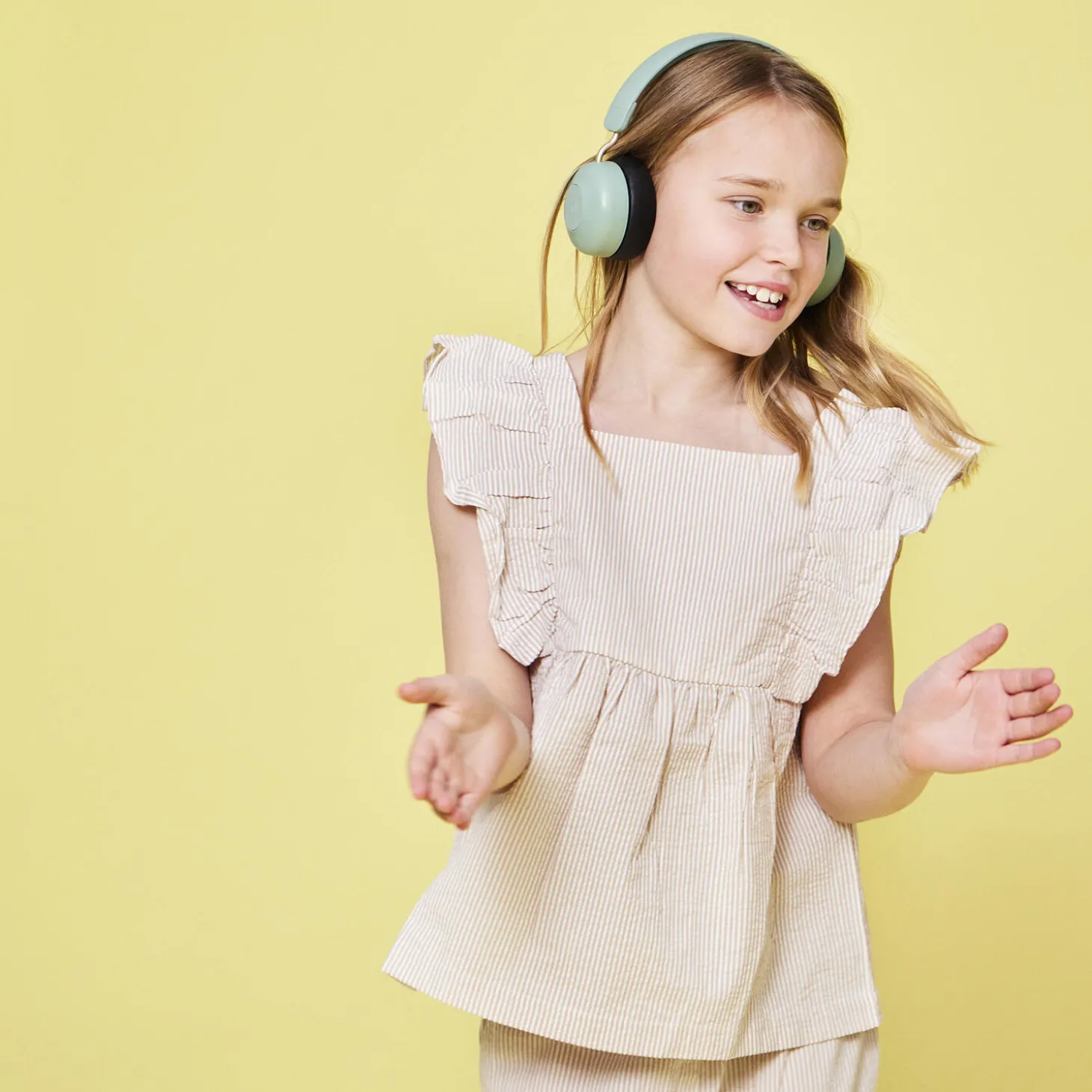 Mød Buzz høretelefonerne, de perfekte lydfølgesvende for børn. Disse høretelefoner har en skøn kombination af klar og afbalanceret lyd. De har ikke kun et stilfuldt design, men er også ultra-komfortable med deres ørepuder, der er lige så bløde som skumfiduser. Uanset om børnene er derhjemme eller på farten, er Buzz det perfekte must-have for at nyde musik, film og spil. Høretelefonerne begrænser lydstyrken til højst 85 dB, hvilket beskytter små ører mod høje lyde samtidig med at give dem en førsteklasses lydoplevelse. ANC-funktionen (Active Noise Cancellation) får magisk al omgivende lyd til at forsvinde, og Qi-funktionen giver dig mulighed for at oplade dem trådløst på vores Qi-opladere. Prøv at matche dem med Paddy – sammen udgør de et sødt par. De leveres med et robust etui, der sikrer, at høretelefonerne er trygt opbevaret og beskyttet.