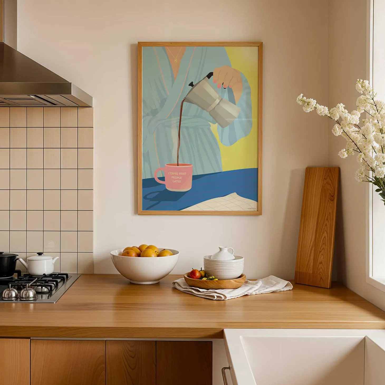 Du er stået op, har trukket i den blødeste morgenkåbe og lader dagen starte i dit eget rolige tempo. Du nyder stilheden og tiden for dig selv – og vigtigst af alt: kaffen! Duften, smagen og varmen fra den første kop er det, der for alvor får dagen i gang. Med den i hånden er du klar til at møde verden. Plakaterne er FSC certificeret og trykt på 170 gr. Arctic Silk papir produceret i Sverige. Produktet er produceret i Danmark.