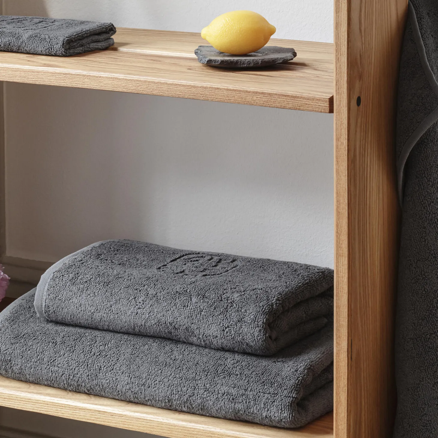 Det klassiske Damask Terry-håndklæde er frottévævet i 100 % dobbelttvundet, kæmmet bomuld. Det bløde håndklæde føles behageligt mod huden og bliver kun bedre, jo mere det bliver brugt. Farven Bright Blue er en klar blå nuance, der går på tværs af Damask Terry-serien.