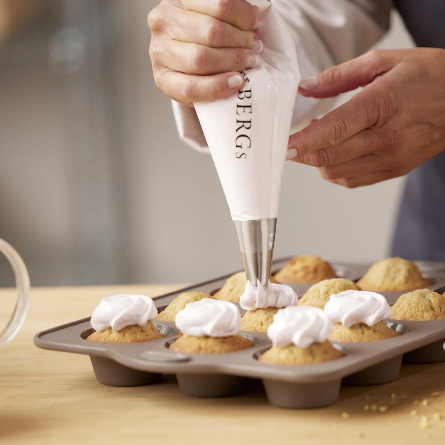 Deko-engangssprøjtepose i smidig kvalitet til sprøjteglasur, chokoladesprøjtning mm. Du kan sagtens også klippe hul i posen & bruge den med diverse tyller. Rulle med 50 stk.