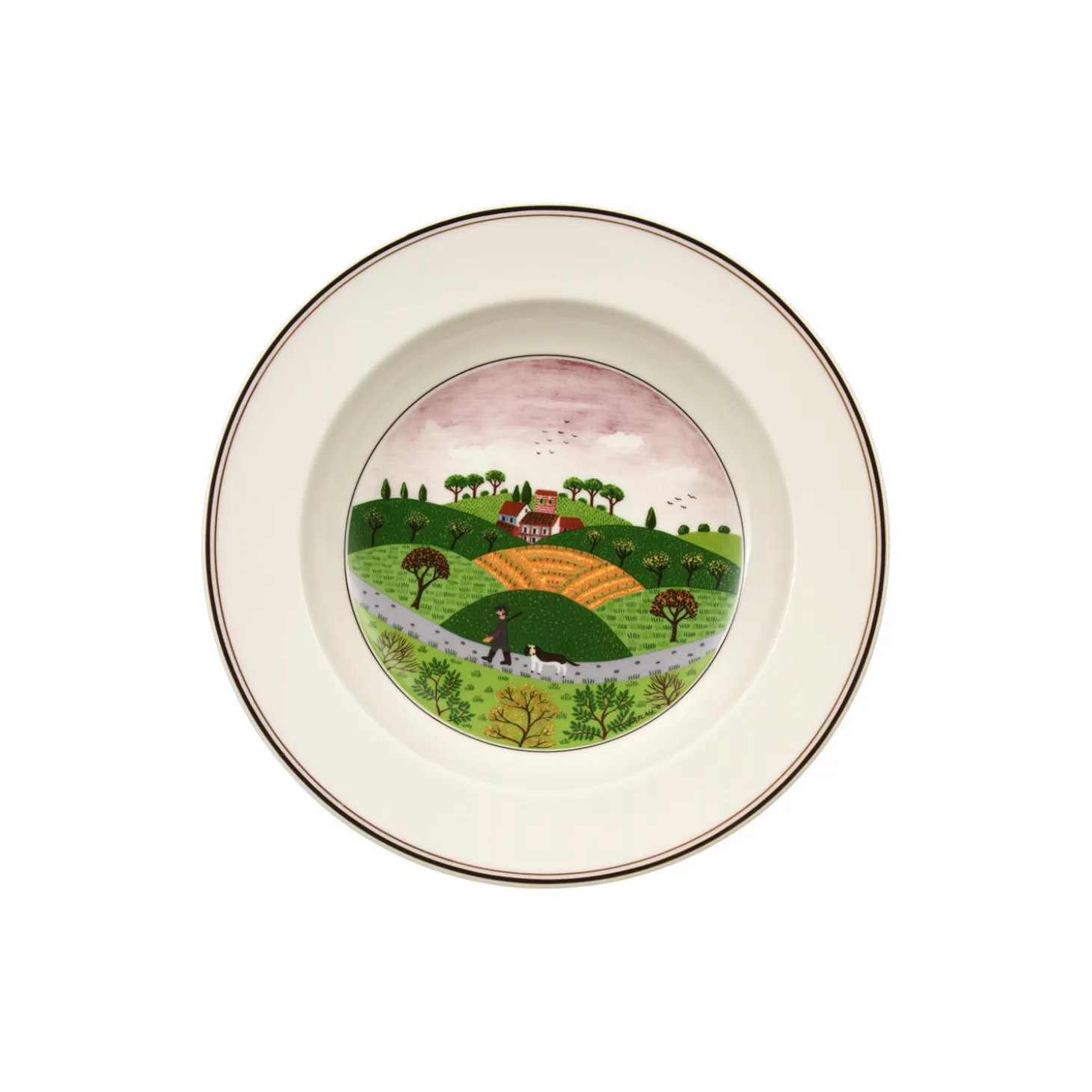 This deep plate forms part of Villeroy & Boch’s folk art design collection Design Naif and shows one out of eight different deep plate designs. The rustic scenes featured on the individual items of this collection will add a touch of charm and atmosphere to any table. Designed by the Corsican artist Gérard Laplau, the decor has made an important contribution to establishing Design Naif as an art form all over the world. This premium porcelain is ideal for everyday use on the breakfast table or for an afternoon coffee break. Dishwasher safe and microwave safe.