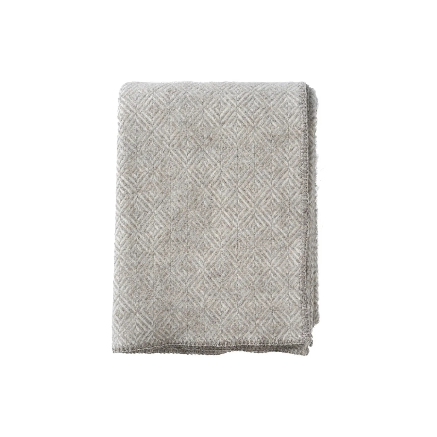 Diamonds plaid i 70% lammeuld og 30% alpakauld fra Klippan Yllefabrik. Farve: beige. Mål: 130×200 cm.