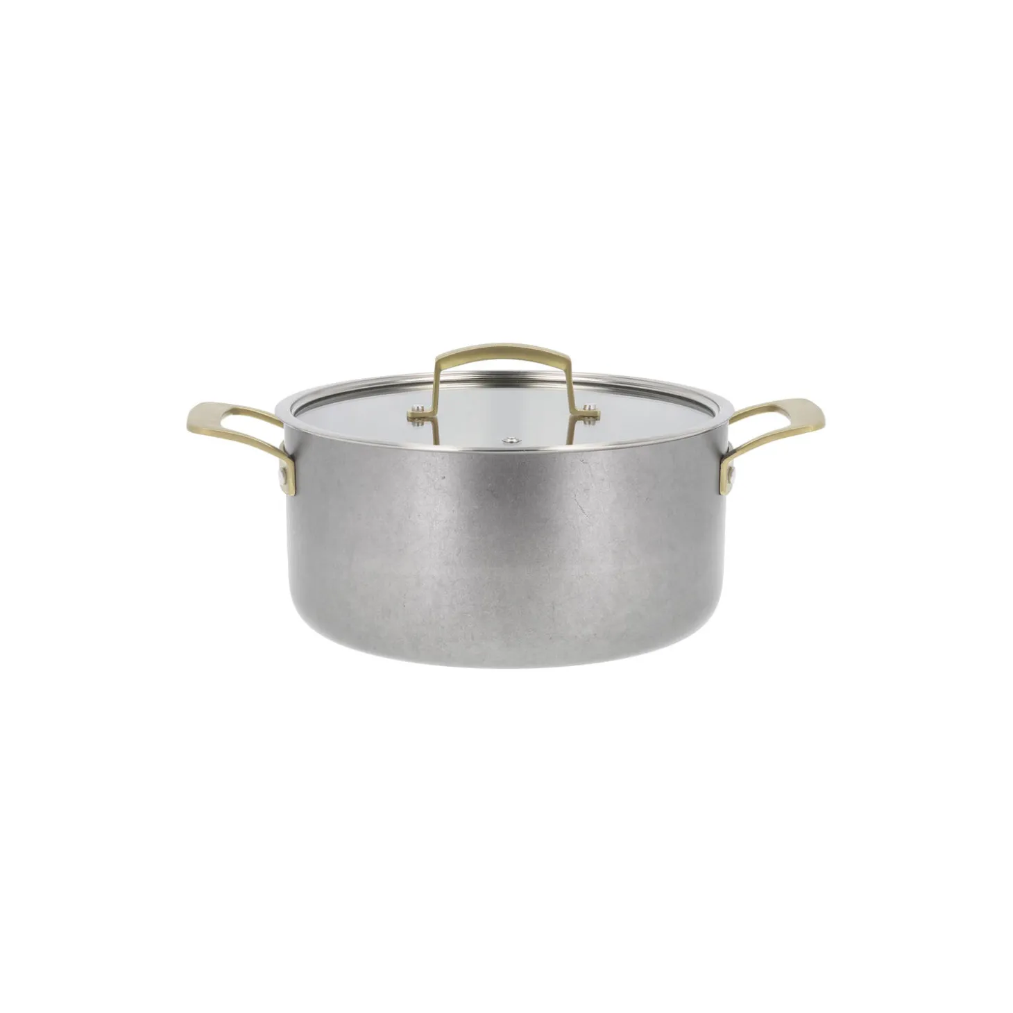 Fremstillet af 18/10 rustfrit stål med en kraftig 2,5 mm 3-lags konstruktion af rustfrit stål, aluminium og rustfrit stål. Mellemlaget af aluminium sikrer optimal varmefordeling. Pånittede støbte stålhåndtag, som er PVD-forgyldt. Ydersiden har en vintage polering. Glaslåg med damphul. Målestreger indvendigt på kasseroller og gryder. Passer til alle varmekilder inkl. induktion. Håndopvask anbefales.