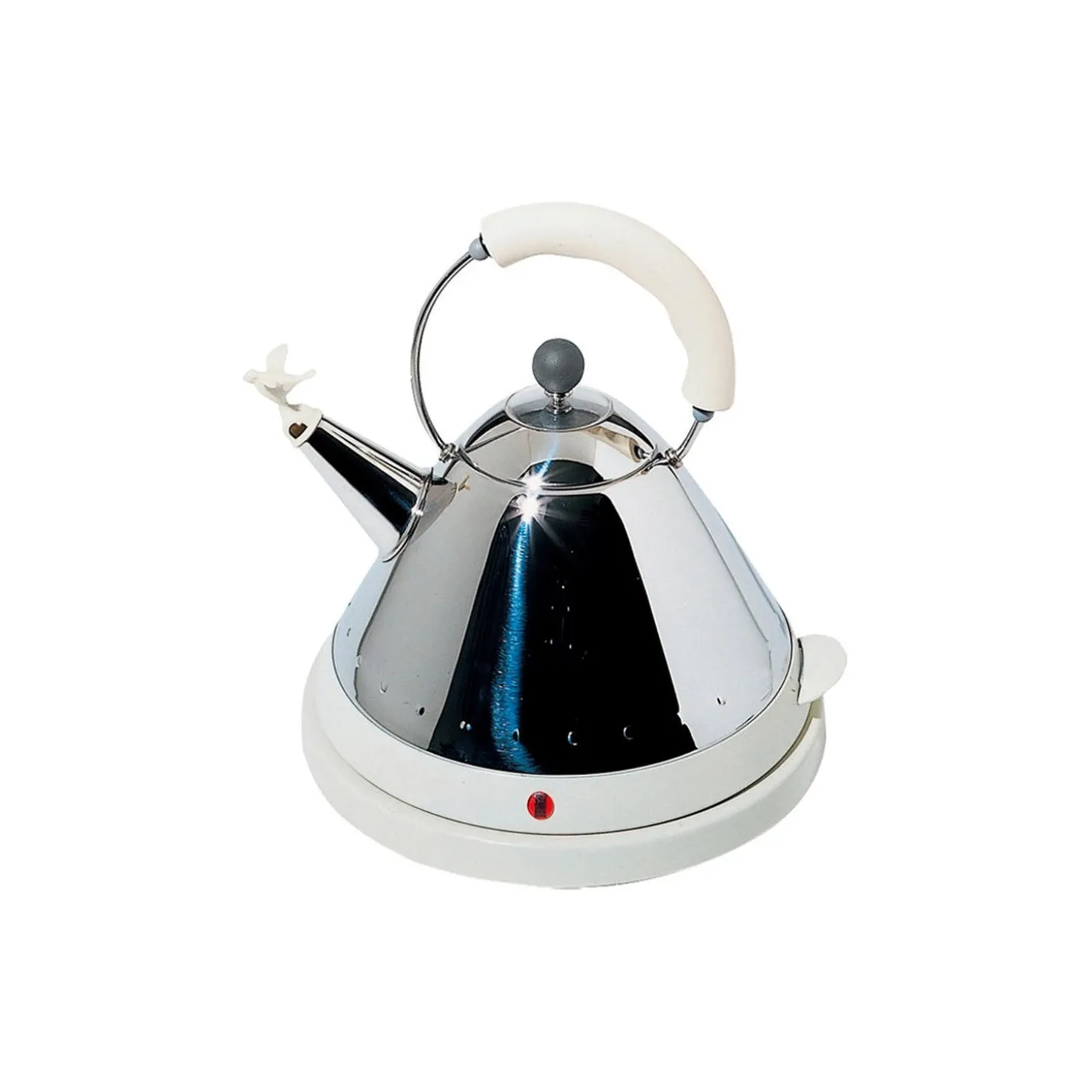 Elektrisk kedel i trådløs elektrisk kedel i blankpoleret rustfrit stål og termoplast fra Alessi. Farve: hvid/stål. H: 27 x Ø 25,5 cm. Indeholder: 1,5 L. Design: Michael Graves.