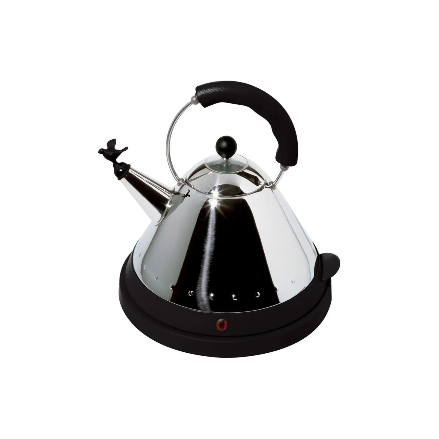 Elektrisk kedel i trådløs elektrisk kedel i blankpoleret rustfrit stål og termoplast fra Alessi. Farve: sort/stål. H: 27 x Ø 25,5 cm. Indeholder: 1,5 L. Design: Michael Graves.