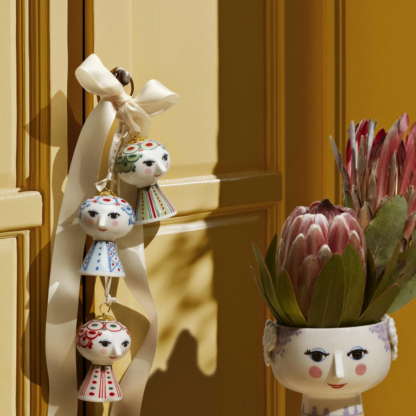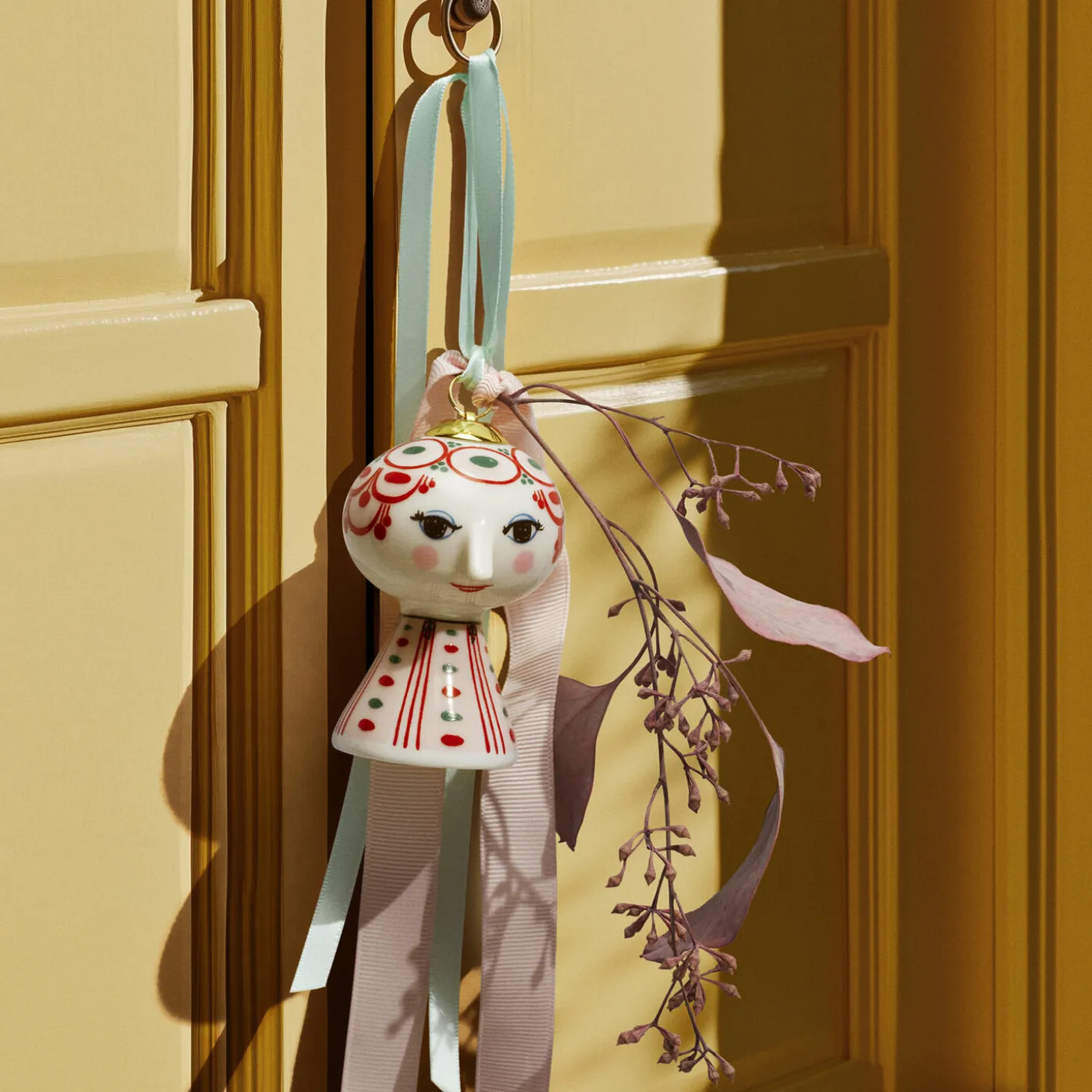 Udfold din farverige personlighed og skab plads til glæde med Bjørn Wiinblads Eva. Så snart du inviterer Eva indenfor, vil du med den populære serie med Bjørn Wiinblads gennemgående streg øjeblikkeligt skabe plads til glæde overalt i hjemmet. Gennem hele sit virke udforskede Bjørn Wiinblad farver, former og mønstre, og med den ikoniske Eva-figur som ophæng kan nemt og dekorativt du lade kreativiteten få frit spil overalt i boligen. Bjørn Wiinblad repræsenterer alt, hvad der er skørt, skævt, kreativt og vidunderligt. Og med dette smukke Eva-ophæng i overvejende røde nuancer inspireret af kunst fra Bjørn Wiinblads legendariske designarkiv får du hurtigt, enkelt og dekorativt skabt et en stemning af glæde og kreativitet, der strømmer ud i ethvert hjørne i dit hjem. Ophænget måler 7,5 cm i højden og er lavet af blankglaseret porcelæn med farvet decal og er inspireret af Bjørn Wiinblads originale Eva-univers, hvor brede hoveder med blomsterdekorationer og en kegleformet krop dannede grundstenene. Ansigtet med de mandelformede øjne og den spidse næse er Wiinblads oprindelige streg, og det farverige kjolemønster er en nyfortolkning af Bjørn Wiinblads illustrationer fra arkiverne. Med sit glade smil, de blussende kinder og farverige dekorationer rummer Eva på alle måder essensen af Bjørn Wiinblad som person og kunstner. Der er noget larger than life over hendes selvsikre, poetiske og drømmende fremtoning, der uanset størrelse gør hende til et statement piece, der fanger øjet i indretningen. Hun pynter og skaber glæde på juletræet, i vinduet og på grene, hvor hun hængende i bånd med guldprint med original Bjørn Wiinblad-dekoration lyser op og gør livet mere farverigt – præcis som Bjørn Wiinblad elskede det. Bjørn Wiinblad var en livsglad kunstner med en stor og farverig personlighed, der gik sine egne veje og ikke var bange for at drømme og tænke stort. Den sjæl mærkes også i Eva, der hviler i sig selv og inviterer os til at udtrykke vores egen stil og personlighed med fokus på kreative dekorationer. En ting er sikkert: Det bliver ikke kedeligt, når Eva flytter ind.