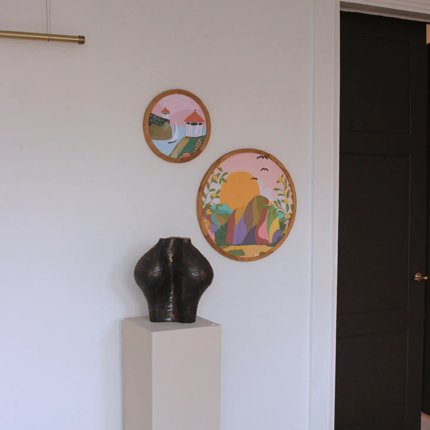 - Materiale: håndlavet cirkulært kunsttryk i egetræsramme
