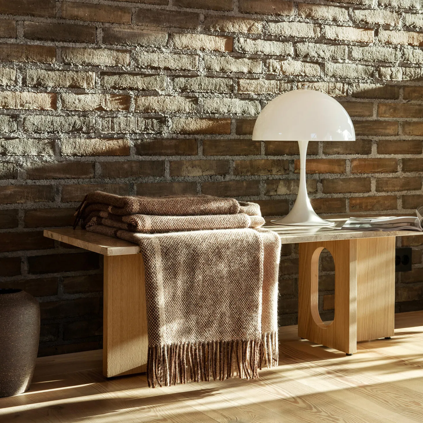 Filos is a soft and light throw with a pattern inspired by Scottish tartan checks seen from traditional kilts. The contemporay interpetation creates a play on colors and depending on how you fold the throw different and harmonious expression comes to life.