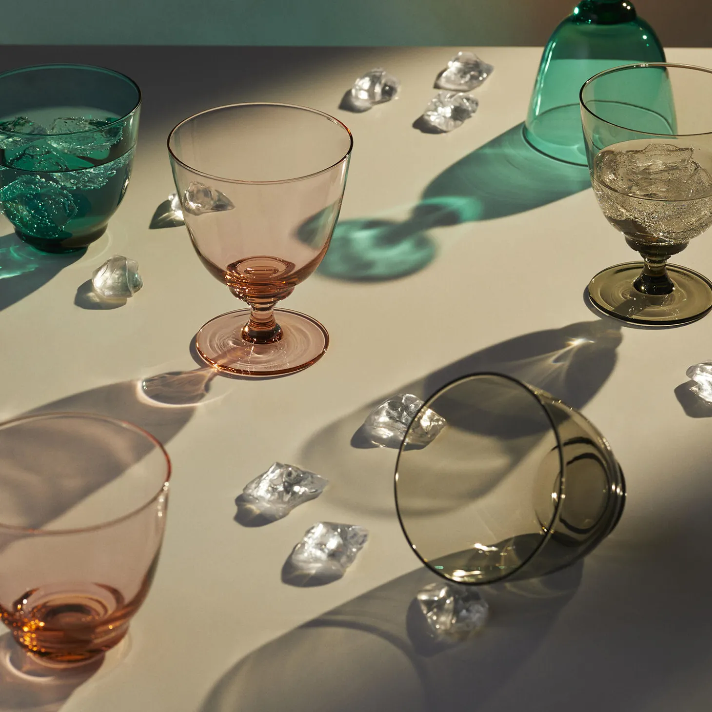 Sæt kulør på hverdagen med en verden af glas i smukke farver. De smukke farver i Holmegaard-serien Flow giver øjeblikkeligt liv til borddækningen og vækker sanserne på ny. Glassene har en klassisk form og er designet med et diskret bølgemønster i bunden inspireret af ringe i vandet. Flow-vandglasset i størrelsen 35 cl i farven Champagne har en dejlig tyngde i bunden og sidder godt i hånden. Den flammepolerede kant gør glasset robust og behageligt at drikke af, og så kan det mundblæste vandglas stables. Det gør både glasset klassisk og praktisk. Alle glas i Flow-serien er mundblæste, så hvert enkelt er helt unikt. Glasset kommer i den let og brusende farve Champagne. Den lyse farve med de abrikosfarvede nuancer bringer friskhed og lethed til bordet og står særligt fint sammen med den smaragdgrønne Emerald Green. Find din favoritfarve i Flow-serien, eller bland flere forskellige farver i borddækningen og skab dit helt eget udtryk fuld af personlighed. Tåler opvaskemaskine ved maks. 55 grader.