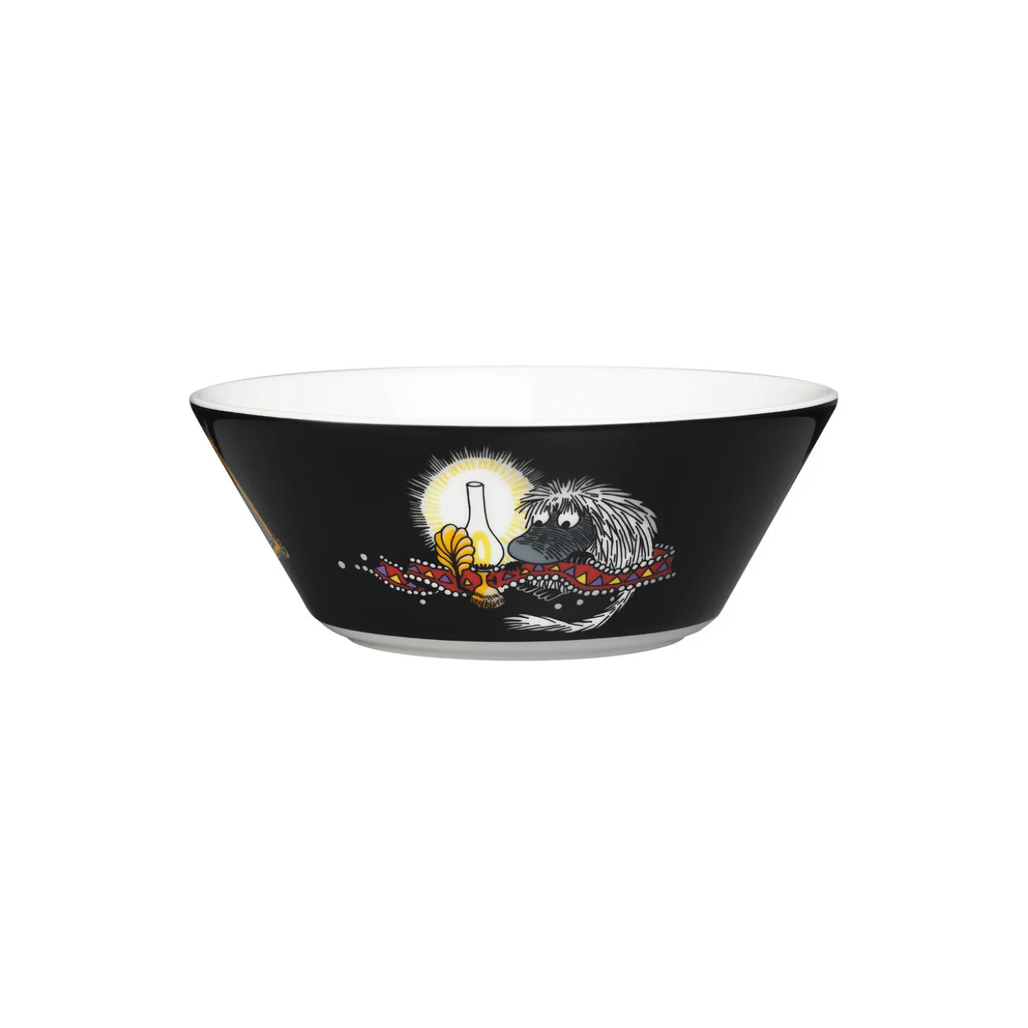 Mumi skål Forfader i porcelæn fra Moomin Arabia. Farve: sort. Mål: Ø 15 cm. Design: Tove Slotte.