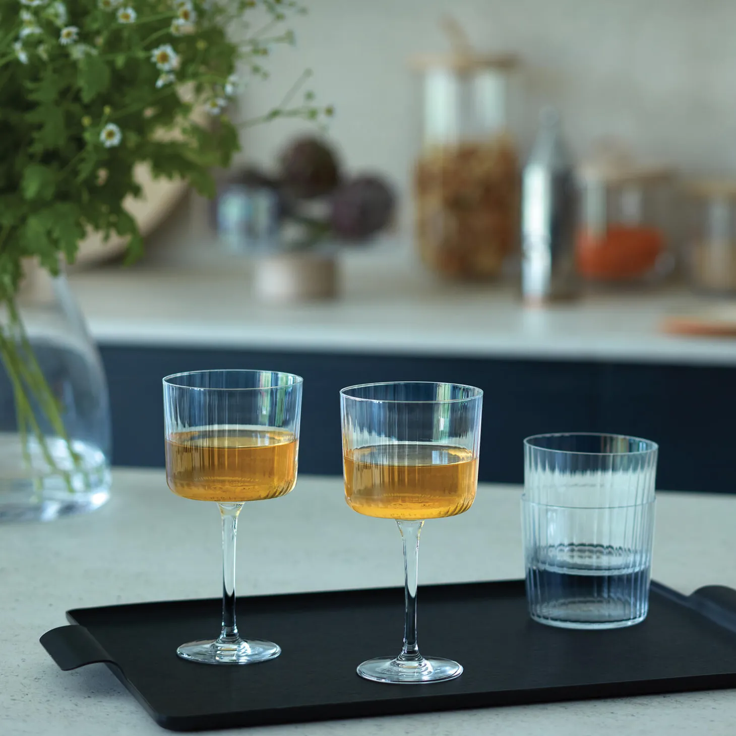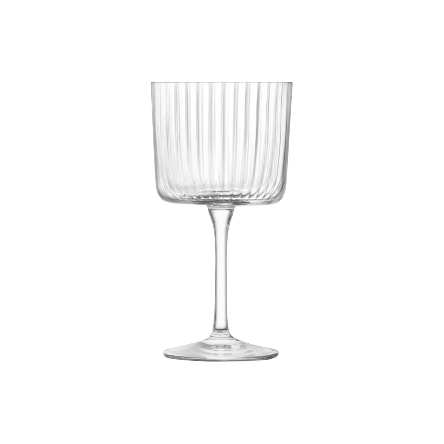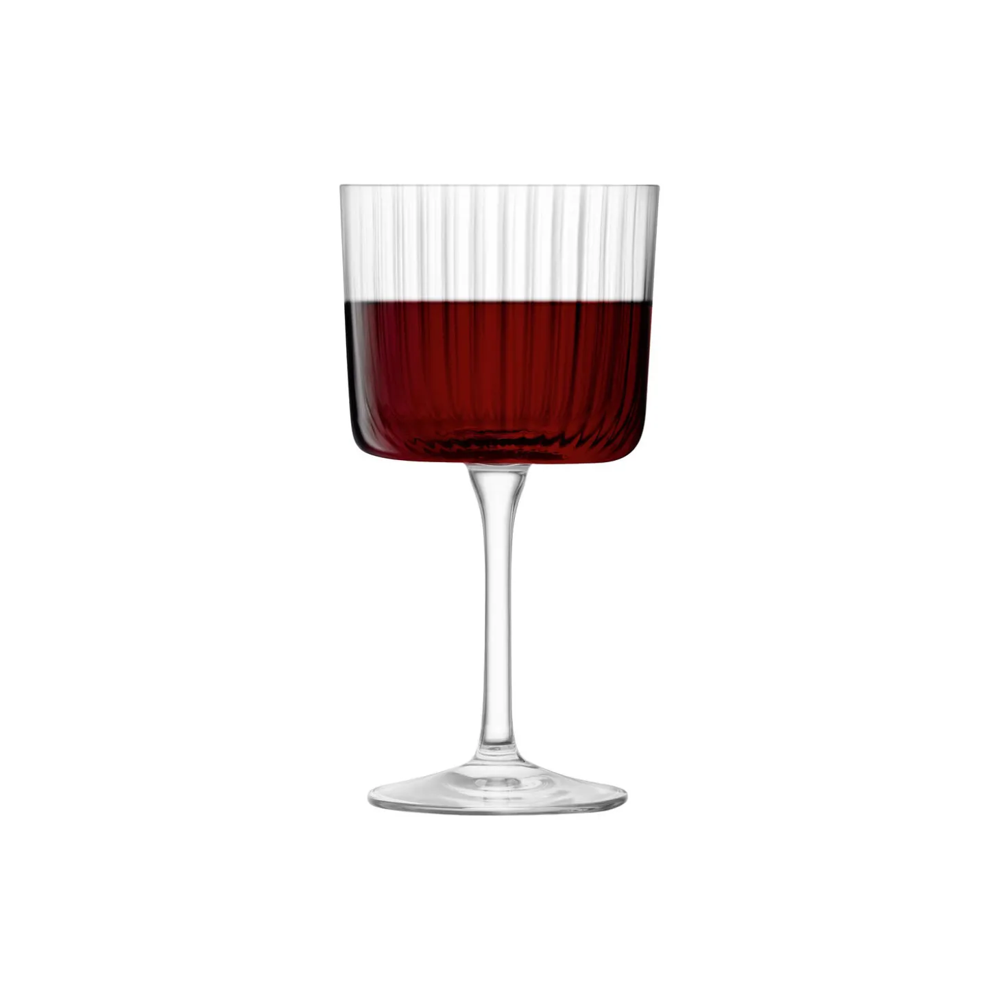 Et sæt af 4 stk. vinglas med rene linjer, bløde firkantede kanter og parrede bagsidesilhuetter. Den lineære, teksturerede finish fremhæver Gios rene, moderne design, og ideel til både rød, hvis og rosé.