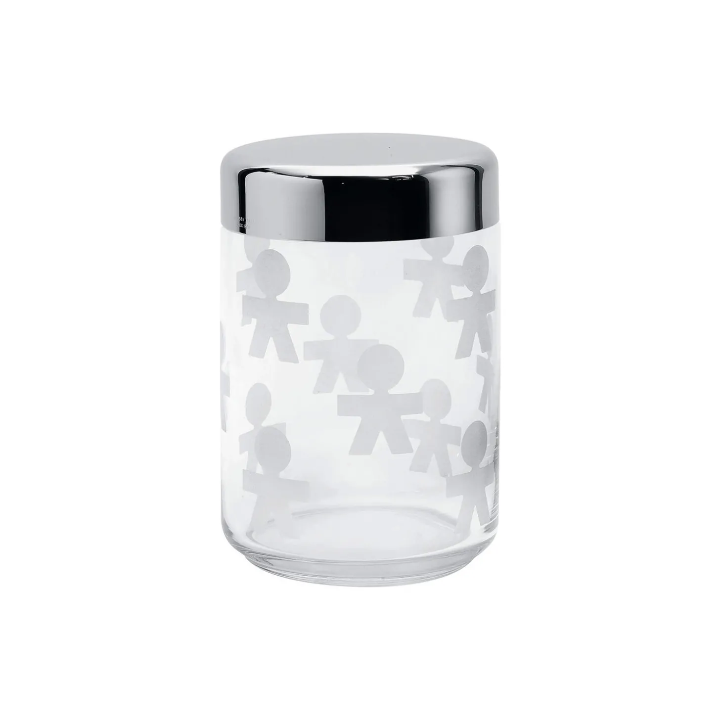 Girotondo opbevaringsglas i glas og rustfrit stål fra Alessi. Farve: klar. Mål: H: 15,8 x Ø 10,5 cm. Indeholder: 100 cl. Design: King-Kong.
