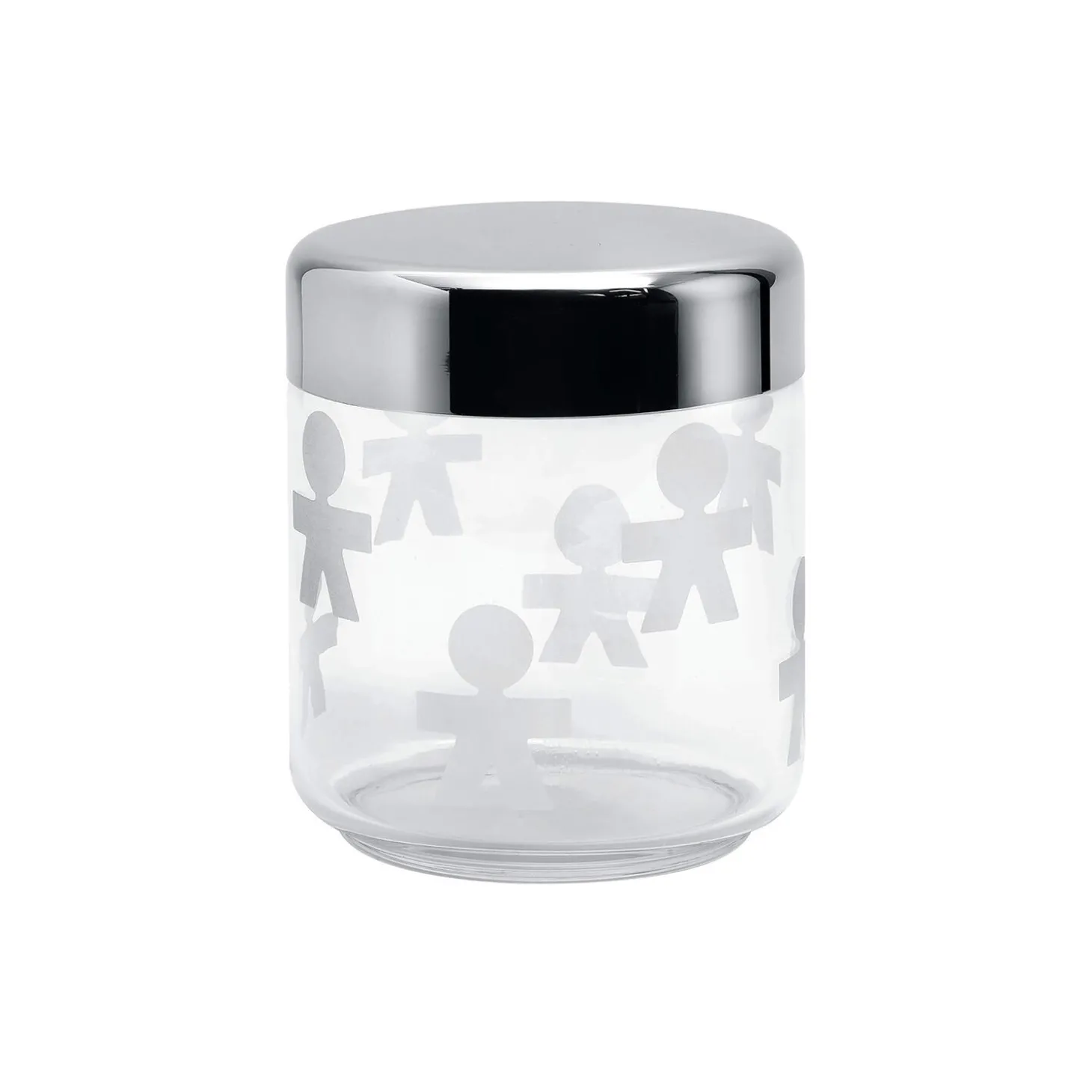 Girotondo opbevaringsglas i glas og rustfrit stål fra Alessi. Farve: klar. Mål: H: 12,3 x Ø 10,5 cm. Indeholder: 75 cl. Design: King-Kong.