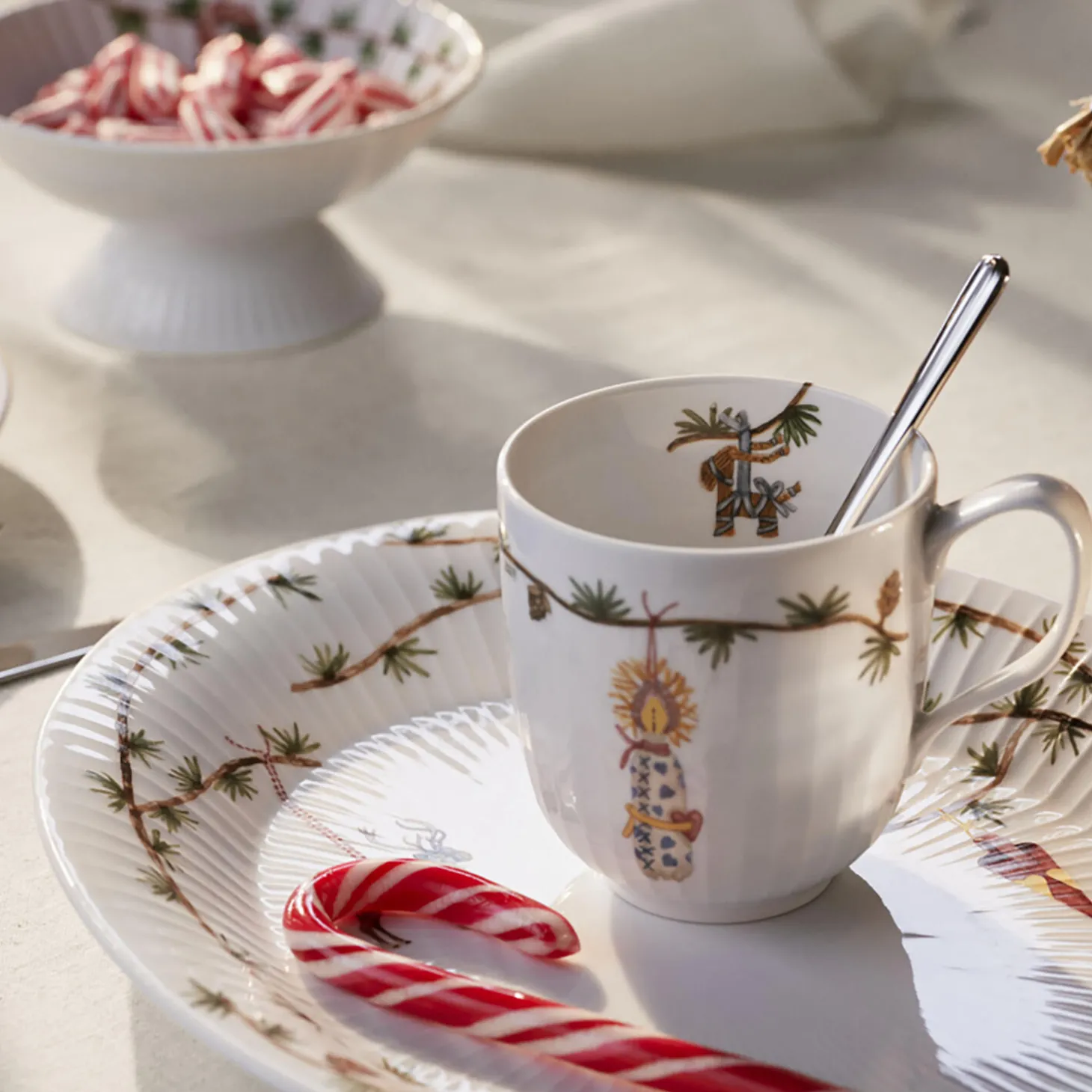Kähler hylder julens særlige nostalgi og traditioner og inviterer med det både klassiske og moderne julestel Hammershøi Christmas os alle ind i julens magiske og fredfyldte univers. Julekruset 2024 fra Hammershøi Christmas er med sine 33 cl perfekt til julens varme drikke, lige fra den traditionsbundne gløgg i løbet af december til aftenkaffen, når roen sænker sig efter julemiddagen. Det er lavet i porcelæn og er dekoreret med en gennemgående lærkegren, der er pyntet med fine, hjemmegjorte ting som pynt i form af tørret æble og en kastanje, en indbydende julekringle med perlesukker og et herligt hjemmesyet julelys, der bringer autenticitet og ægthed ind i julen. Kigger du inden i kruset, har en julebuk i halm gemt sig som en lille overraskelse midt i din gløgg eller julekaffe. De yndige julemotiver er gennem årene skabt af kunstner Rikke Jacobsen, der hvert år tilfører det klassiske Hammershøi-stel designet af Hans-Christian Bauer endnu et strejf af julemagi. I dag rummer Hammershøi Christmas dele nok til en komplet opdækning til alle decembers måltider, fra brunch og frokost til julemiddag.