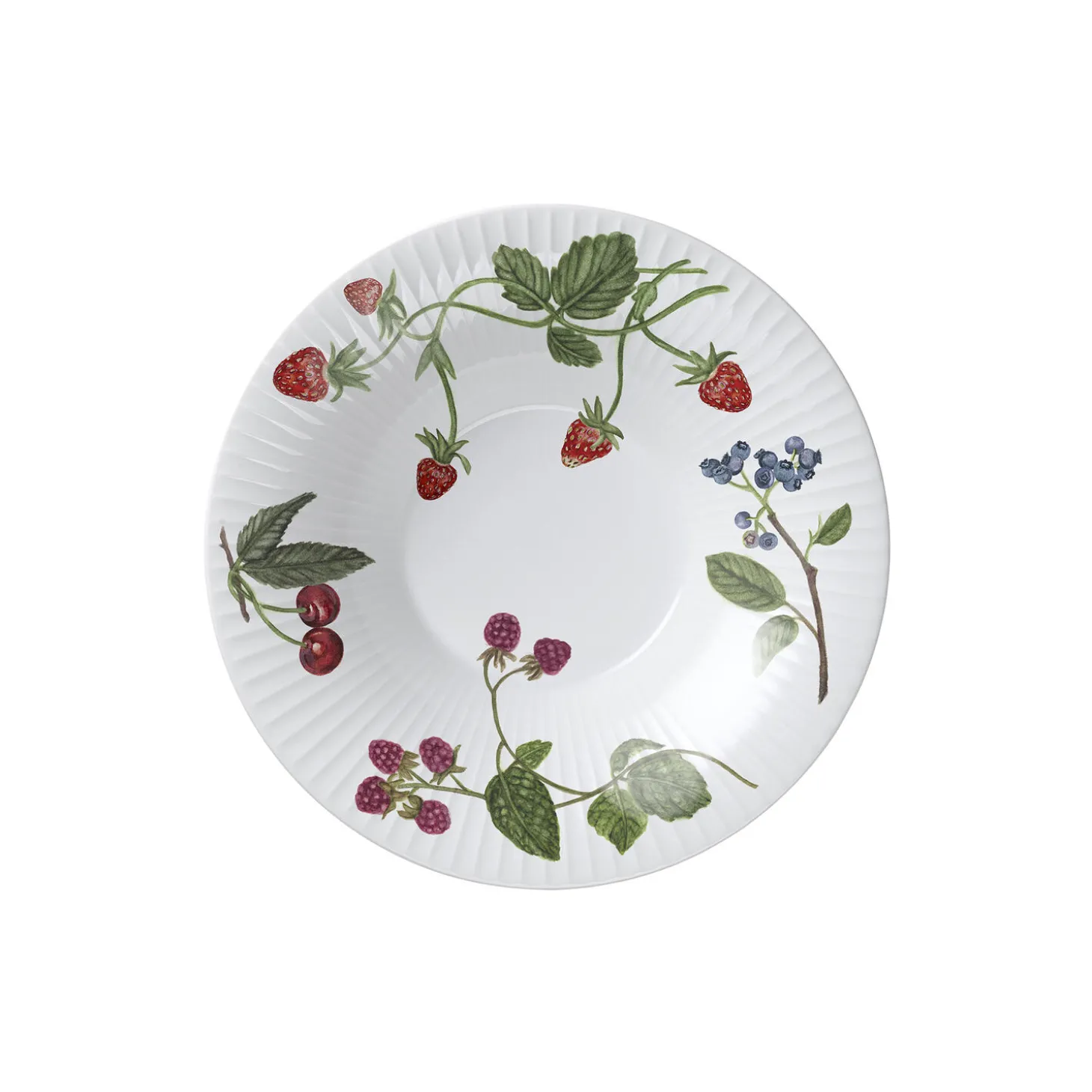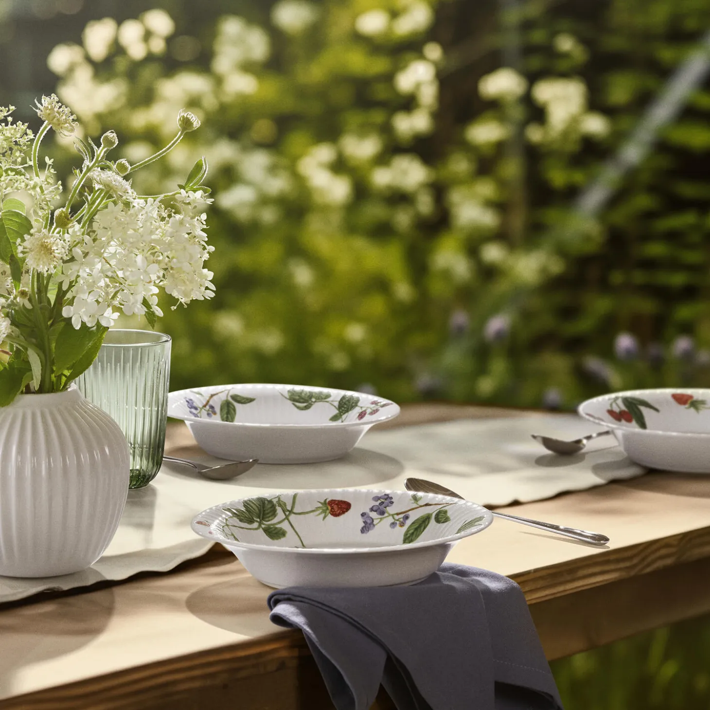 Blomstrende farver, former og følelsen af autentisk sommerstemning. Med Hammershøi Summer fra Kähler kan du næsten mærke solens stråler og den lune sommervind, når du dækker op til kaffe og lidt lækkert på terrassen, altanen eller i sommerhuset. Hammershøi Summer-serien er inspireret af den danske sommers eventyrlige former, farver og følelser, og den dybe Hammershøi Summer-tallerken med sommerbær med en diameter på 21 cm er ligesom de andre dele i sommerbærtemaet flot udsmykket med blandt andet jordbær, blåbær og sommerfuglen dagpåfugleøje, der legende og poetisk flyver gennem sommeren. Sommerbærtemaet er malet på samme måde som de andre temaer i Hammershøi Summer-serien, hvor planter og blomster nærmest bevæger sig uvilkårligt hen over de klassiske riller på de hvide keramikdele. Det er som om de nærmest vokser op, ja, næsten danser hen over porcelænet med deres forskellige asymmetriske retninger. Tallerkenen vil være et smukt supplement til de øvrige dele i serien – også på tværs af temaer – hvor den vil fuldende en glad og hyggelig sommerstemning på bordet, samtidig med at du nyder den autentiske nostalgi i Kählers håndlavede designtraditioner. Det er nemt at forestille sig den dybe Hammershøi Summer-tallerken som den perfekte base for en sprød salat fra haven, og både størrelsen og selvfølgelig motivdesignet gør den helt oplagt til servering af et par bakker nyplukkede jordbær fra vejen eller det nærliggende gårdudsalg. Motiverne er skabt af kunstner Rikke Jacobsen på Hammershøi-stellets eksisterende dele designet af Hans-Christian Bauer. Med sine smukke akvareller skaber hun detaljerige motiver, hvor flora og fauna spiller en gennemgående rolle og indfanger stemningen i naturen og årstiderne omkring os.
