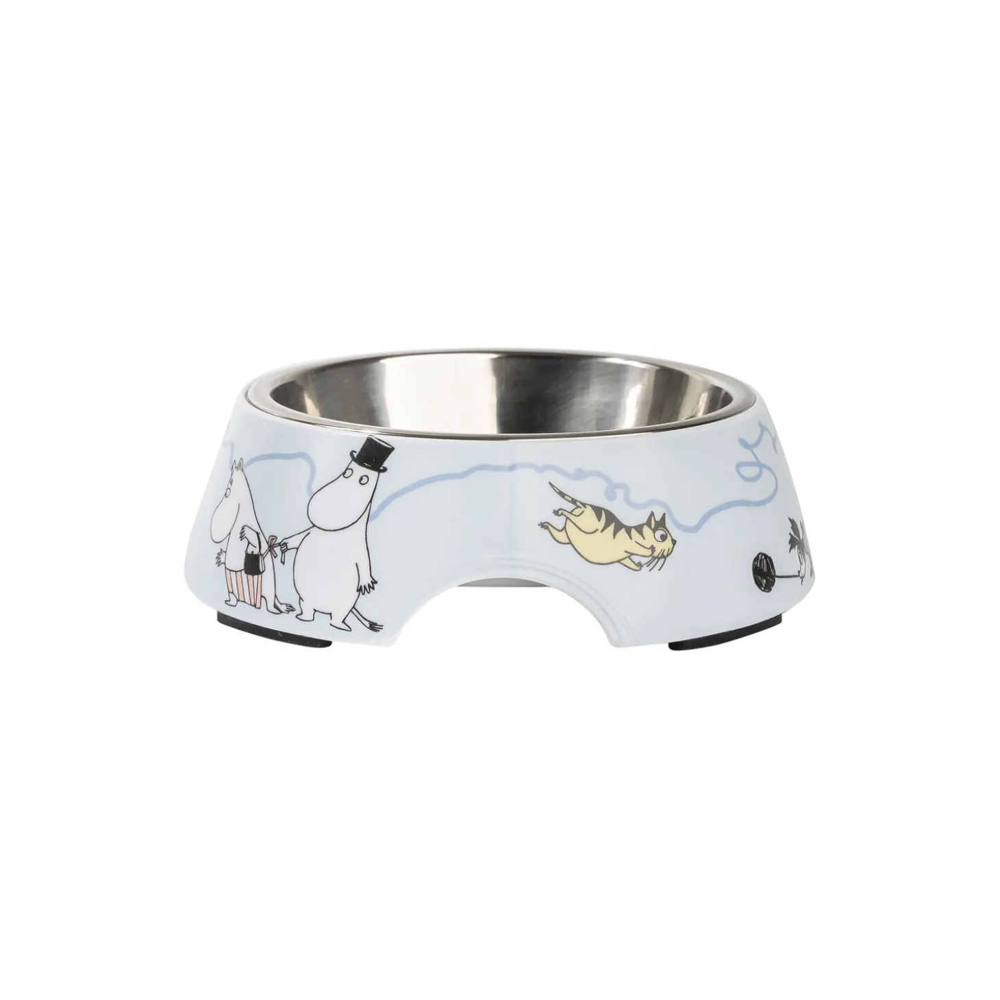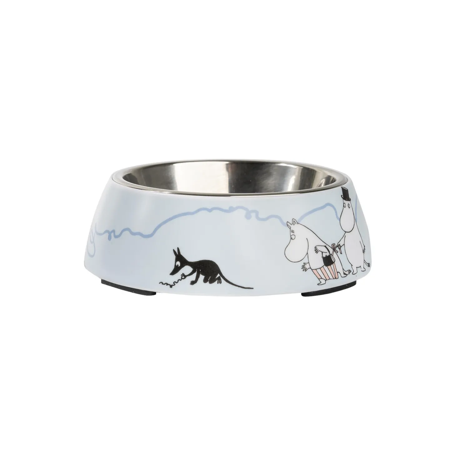 Fin lille lyseblå skål med mumitrolden og hans ven snif på opdagelse. Kan gå i opvaskemaskinen. Skridsikker bund. Udformet i melamin og rustfrit stål.