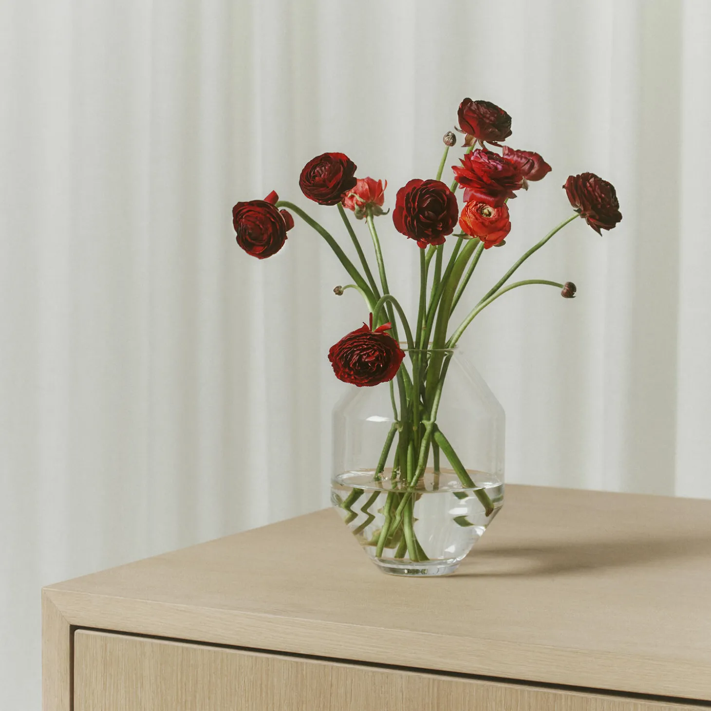 Hydro-vasen, der refererer til klassiske keramikvaser og antikke græske kar, giver et moderne statement. Udgaven i glas er en kærkommen tilføjelse til serien med let og spændende udseende.