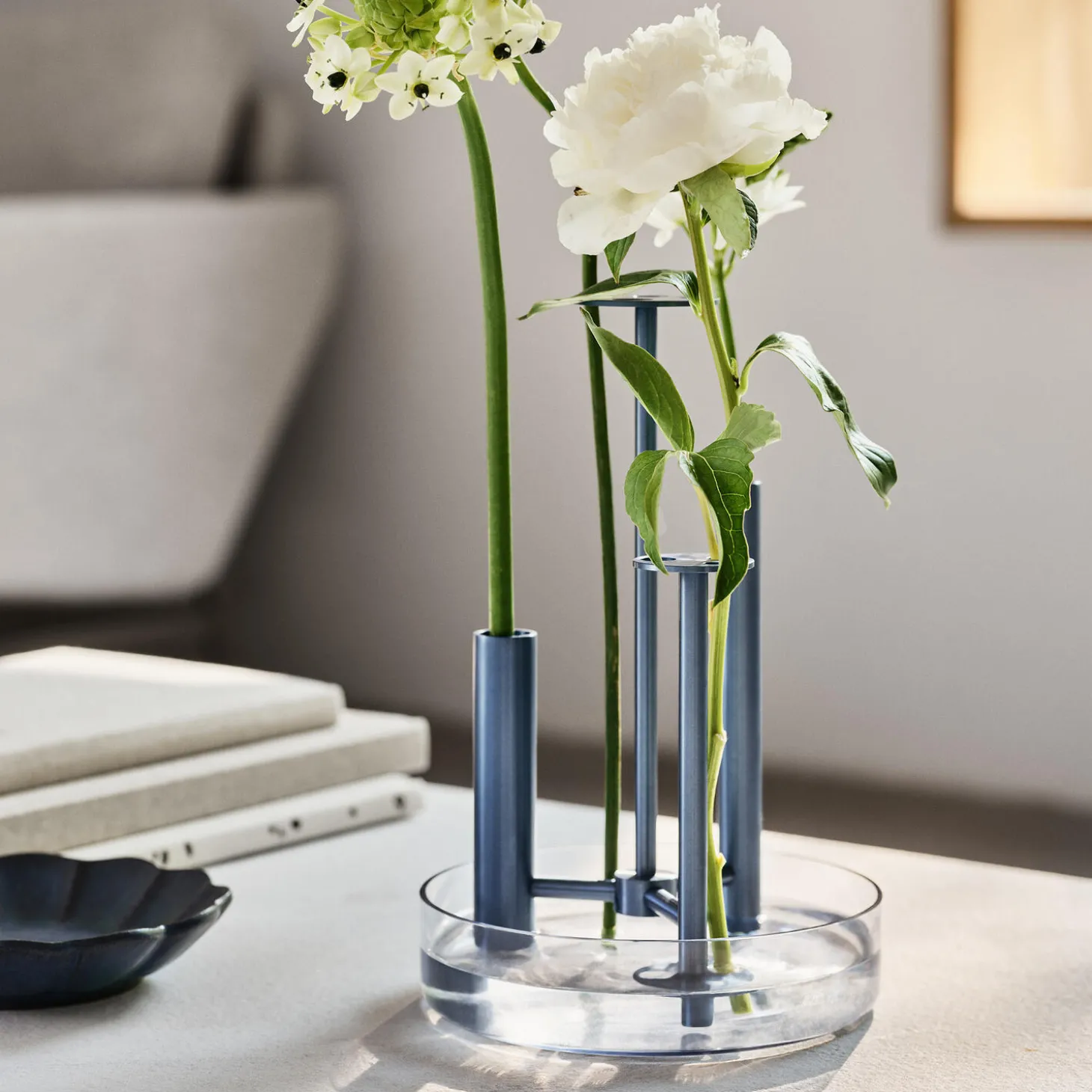 Ikeru™ vase i metal og glas fra Fritz Hansen. Farve: dusk blue. Mål: H: 23,9 x Ø 16 cm. Design: Jaime Hayon.