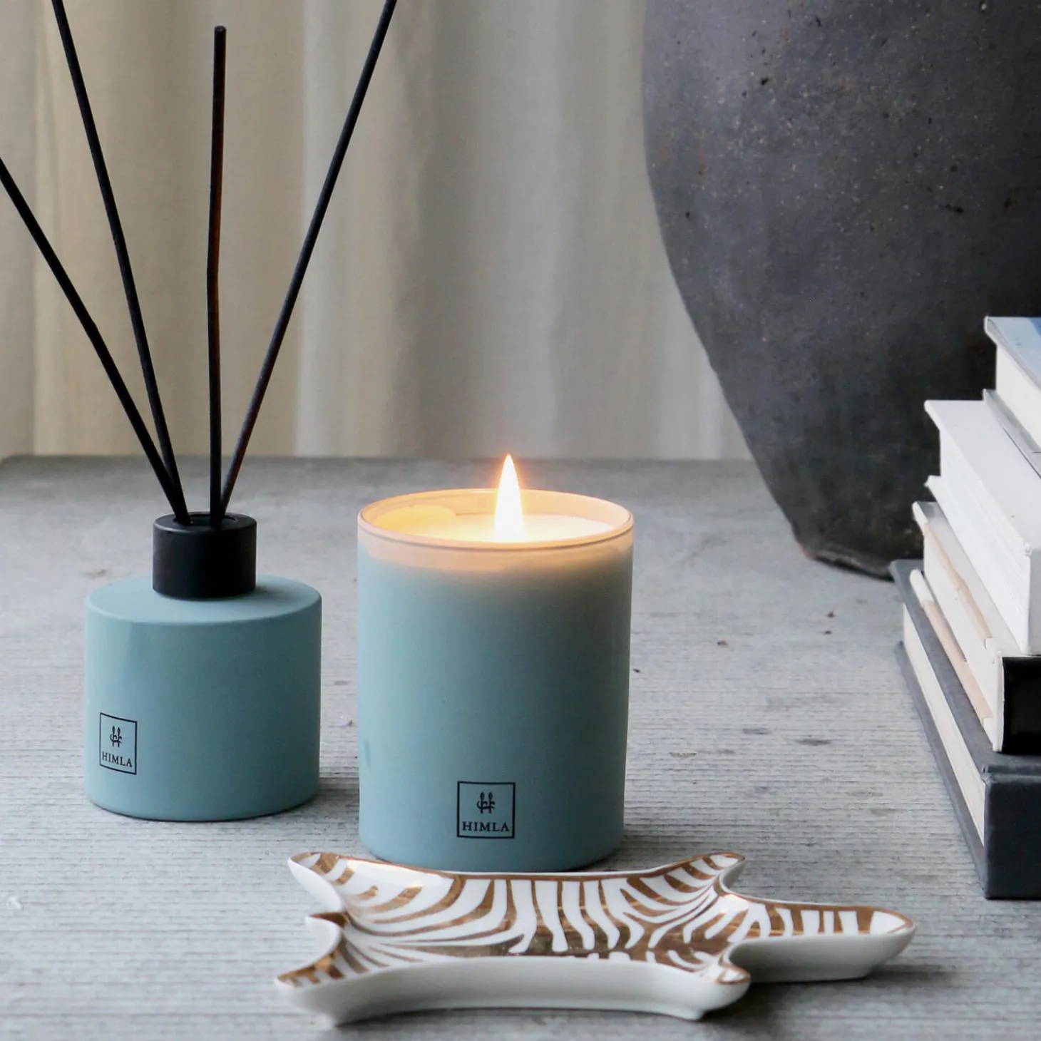 Himlas duftserie Inhale fås både som duftlys og rørdiffusorer. Duftlyset kommer i et mat farvet glas og indeholder kun naturlige ingredienser; sojabønnevoks og duftolie. Duftlyset har en brændetid på 60 timer, er 100% vegansk og indeholder ikke palmeolie eller paraffin. Ocean breeze har en kølig duft af havbrise, moden citrus, der hviler på en base af solbleget drivtømmer.