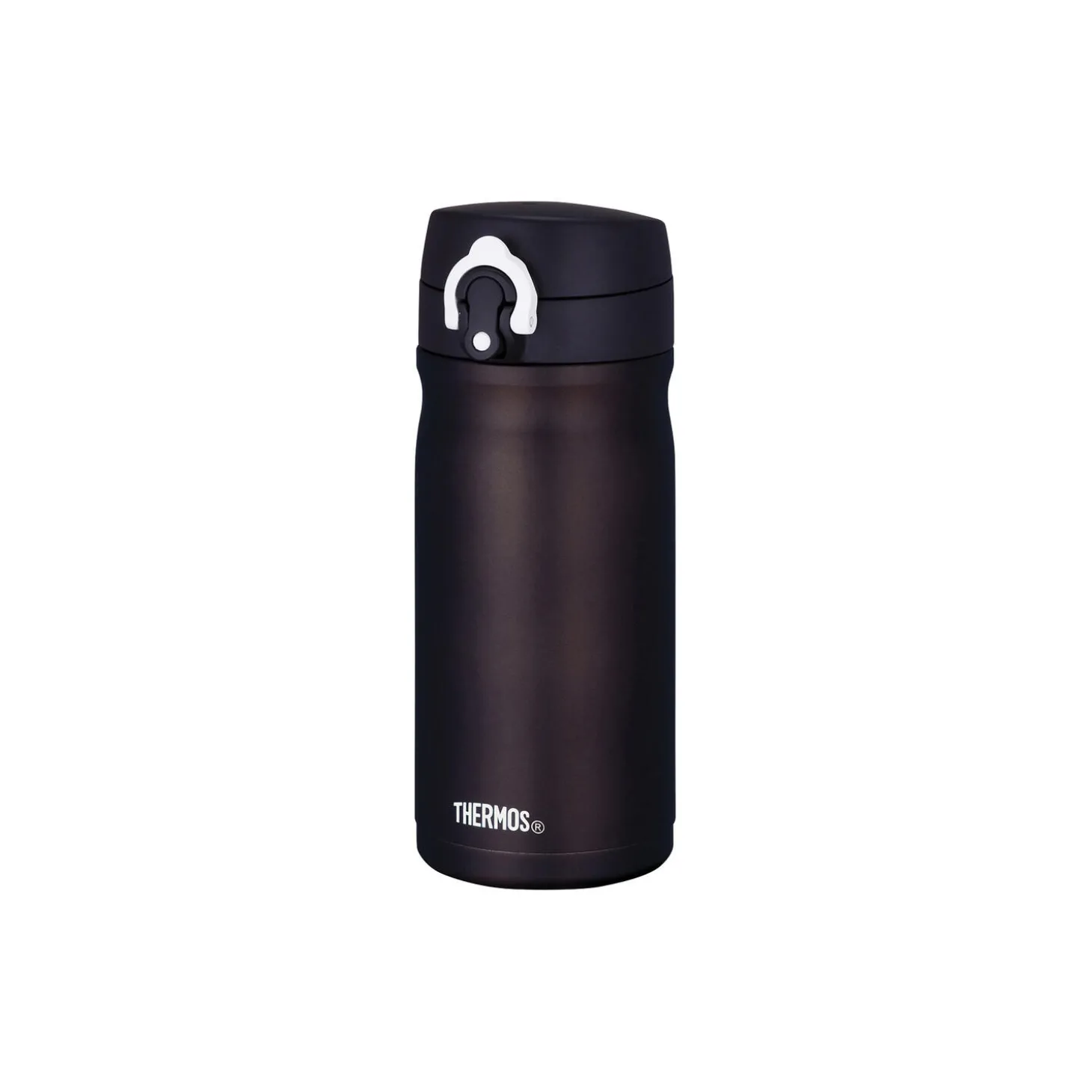 Thermos JMY 350 ml er en smart blanding af en lille termoflaske og en termokop fremstillet i rustfrit stål med et drikkelåg. Kan bruges til både til kolde og varme drikke.