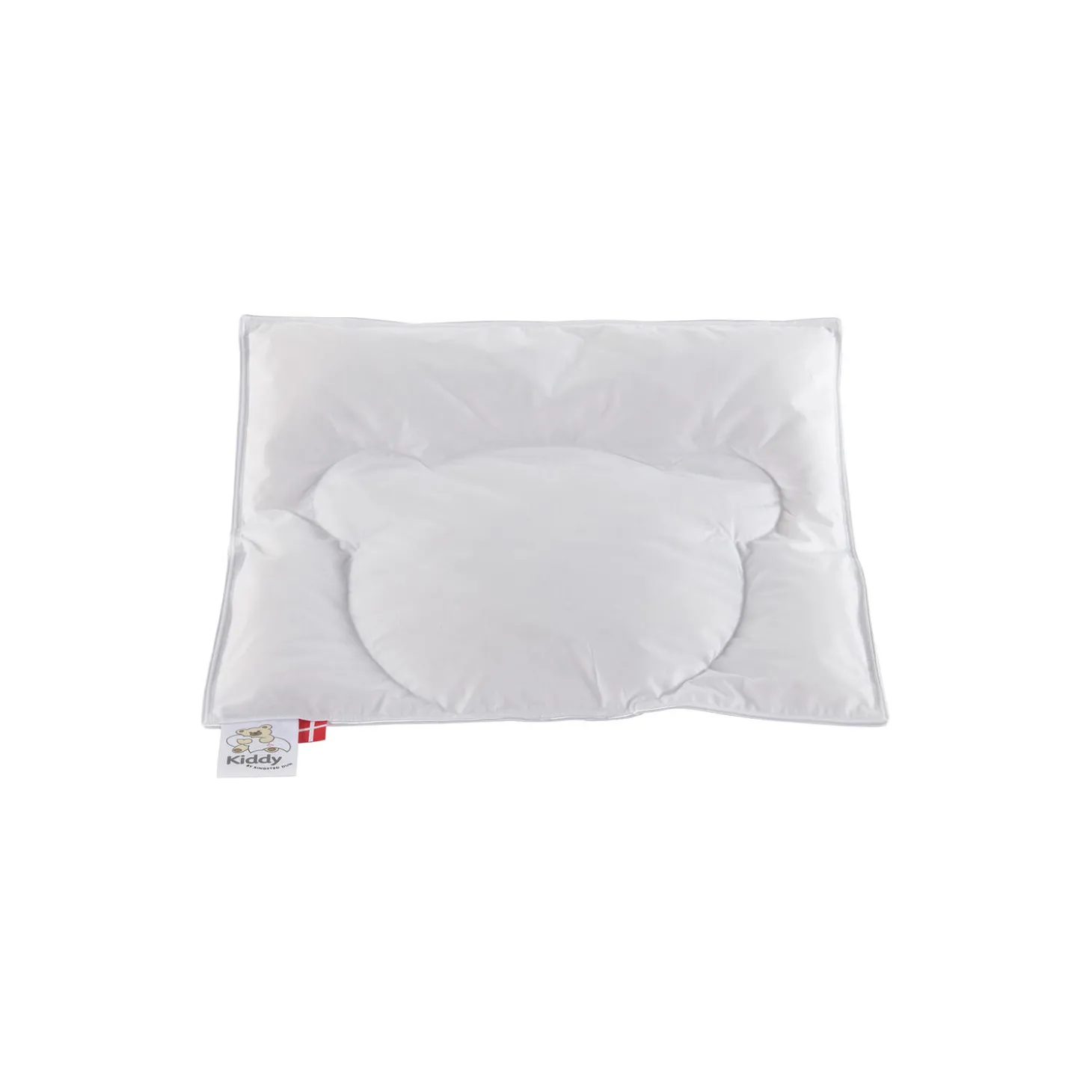 Kiddy babypude med moskusdun og vår i bomuldscambric. Farve: hvid. Mål: 40×45 cm. Bæreevne: 11.