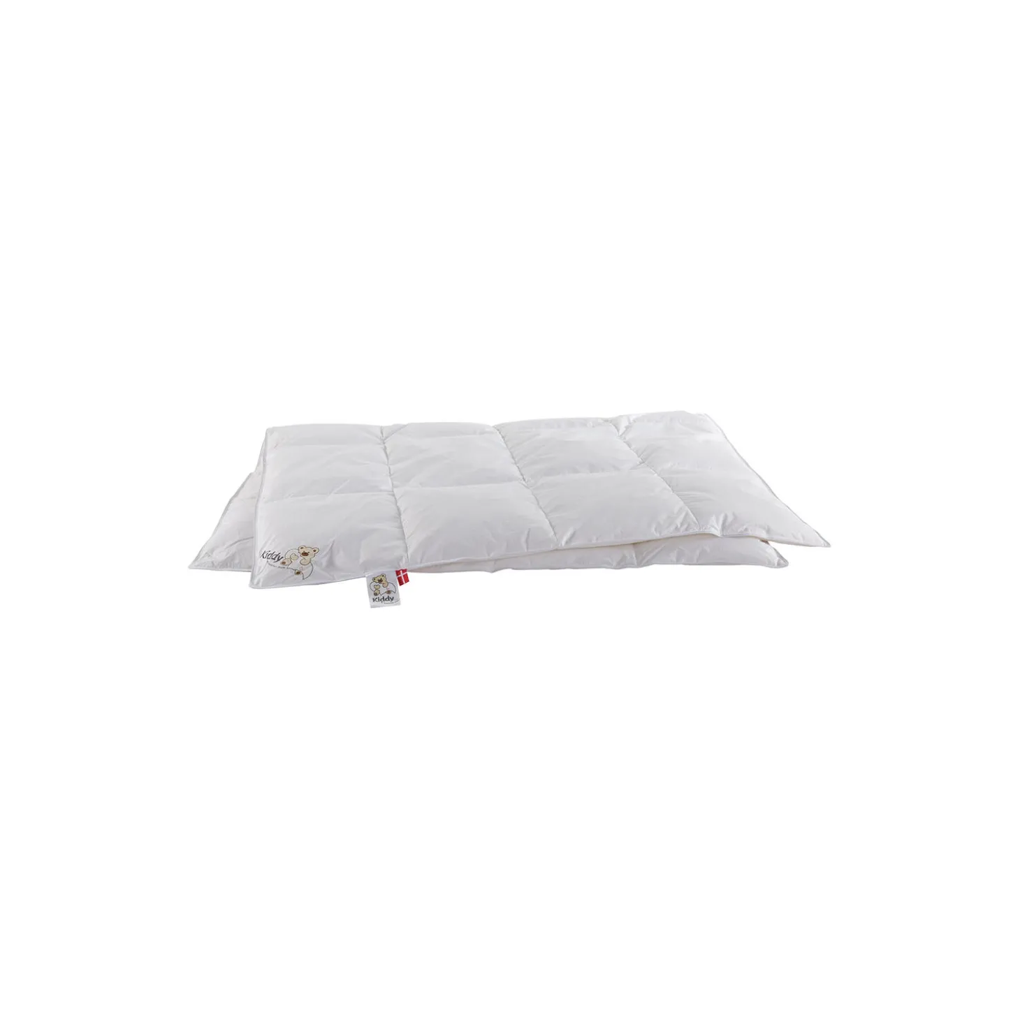 Kiddy juniordyne ekstra varm med moskusdun og vår i bomuldscambric. Farve: hvid. Mål: 100×140 cm. Bæreevne: 11.