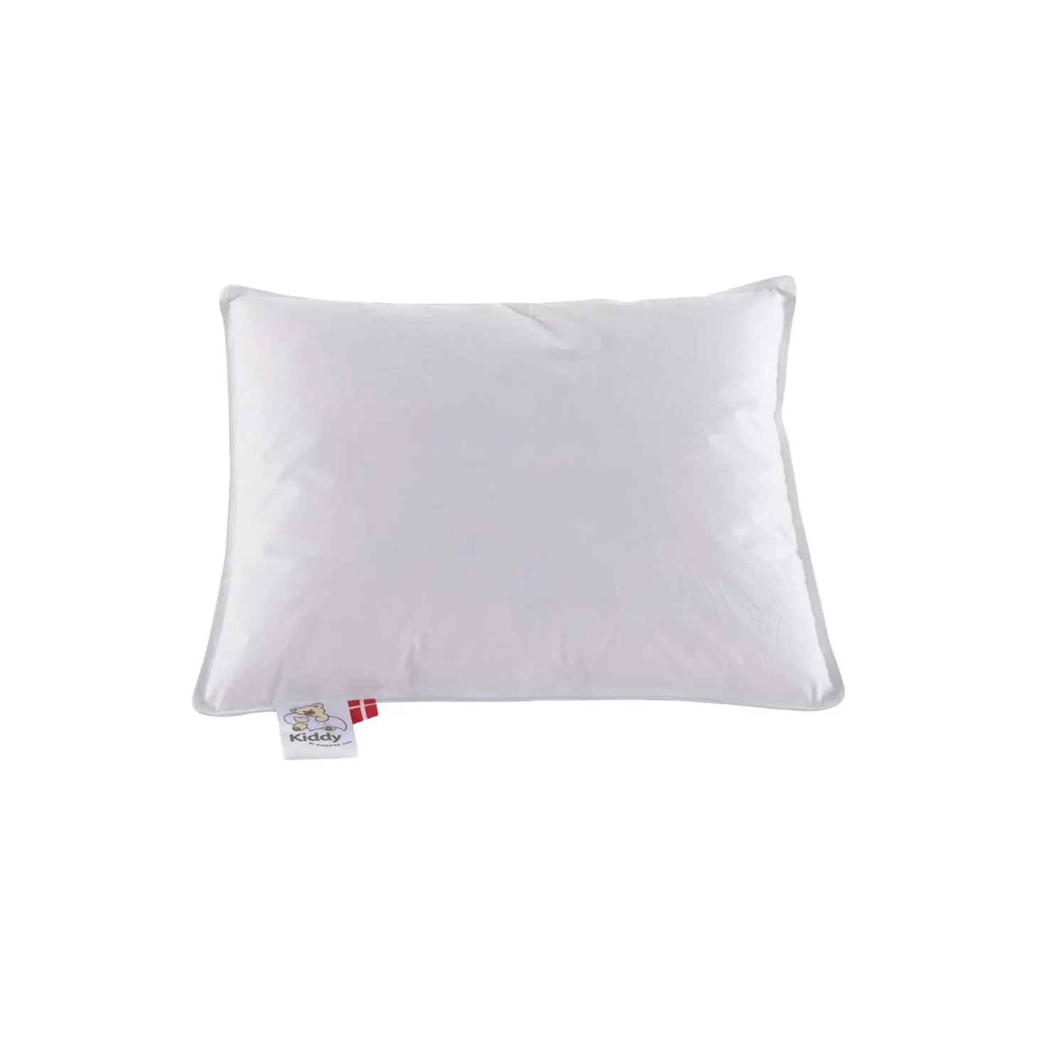 Kiddy juniorpude med moskusdun og vår i bomuldscambric. Farve: hvid. Mål: 40×45 cm. Bæreevne: 11.