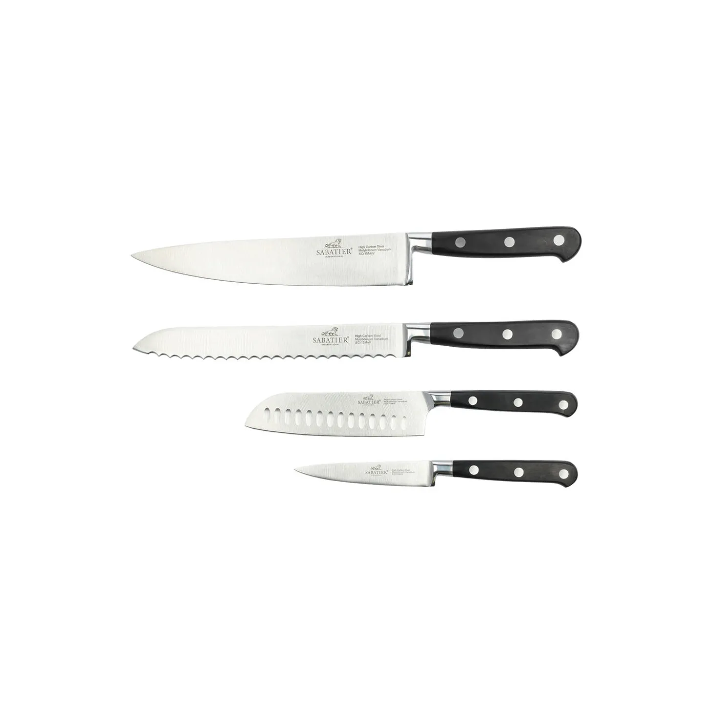 Elegant og stærkt Licorne knivsæt, der består af urtekniv 9 cm, mini santokukniv 13 cm, brødkniv 20 cm og kokkekniv 20 cm.• Skabt af det ultrastærke materiale 5Cr15MoV, der foruden stål består af karbon, krom, molybdæn og vanadium, der bidrager til knivens hårdhed og rustfri egenskaber. • Lion Sabatier blev registreret som det første Sabatier-varemærke allerede i 1812, og er det eneste, der må anvende løven som symbol. Løven er dyrenes konge og står for styrke, smidighed og overlegenhed – din garanti for kvalitet.
