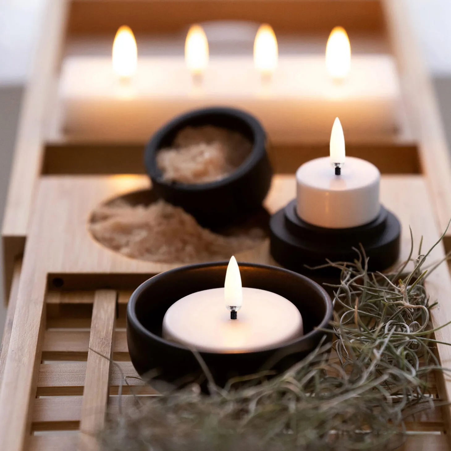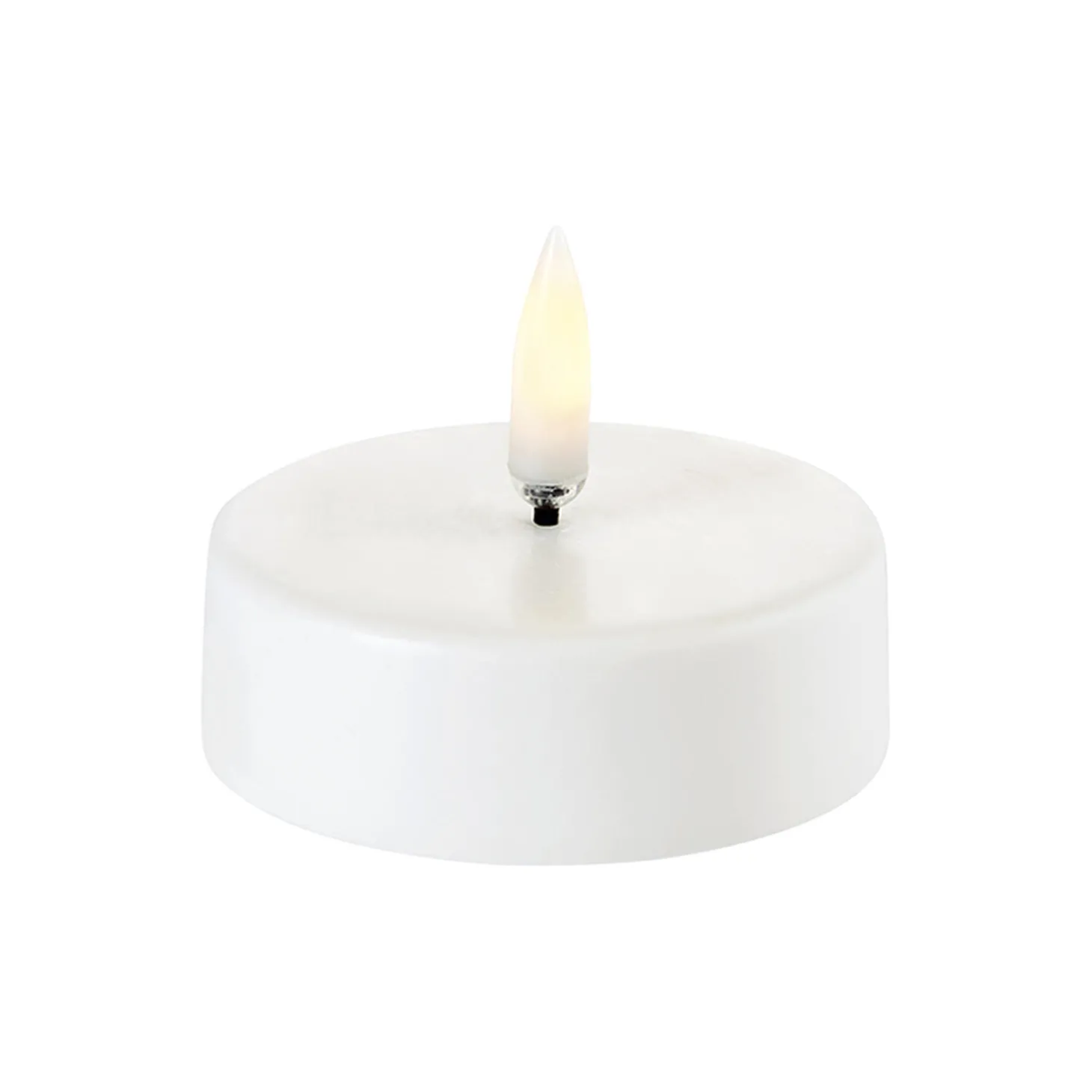 The Tealight Candle can stand alone as a pinprick of light or in group of tealights to create a collection of light. The flickering LED light sets the ambience beautifully and with purpose. Unscented. Built-in 6-hour Timer. Patent Pending 3D Flame. Uses 2 x AAA battery (not incl.). 200+ hours battery life. Can be used with the Uyuni Remote Control (sold separately).