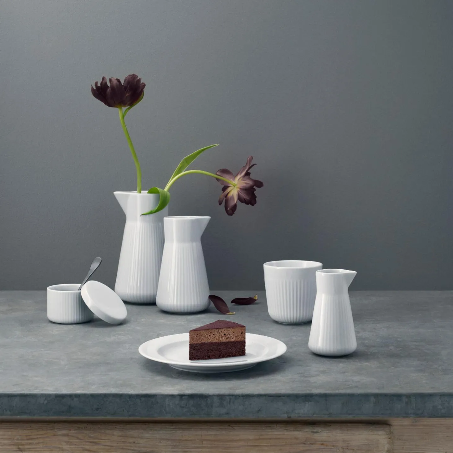 Hvor Legio’s formsprog er absolut minimalistisk, er Legio Nova designet med riller, der raffineret danner rammen om maden. Eva Trio er sponsor af det danske kokkelandshold, og i designprocessen er der fundet inspiration i at se deres madkunst, og den omhu de lægger i deres håndværk. Derfor indrammes tallerkenens midte af elegante riller der fremhæver anretningen. Legio Nova er ligesom Legio porcelæn af høj kvalitet, der både tåler ovn, mikroovn og fryser. Der er 10 års porcelænsgaranti på stellet, og så er det ikke mindst testet af det danske kokkelandshold, som anbefaler Legio Nova.