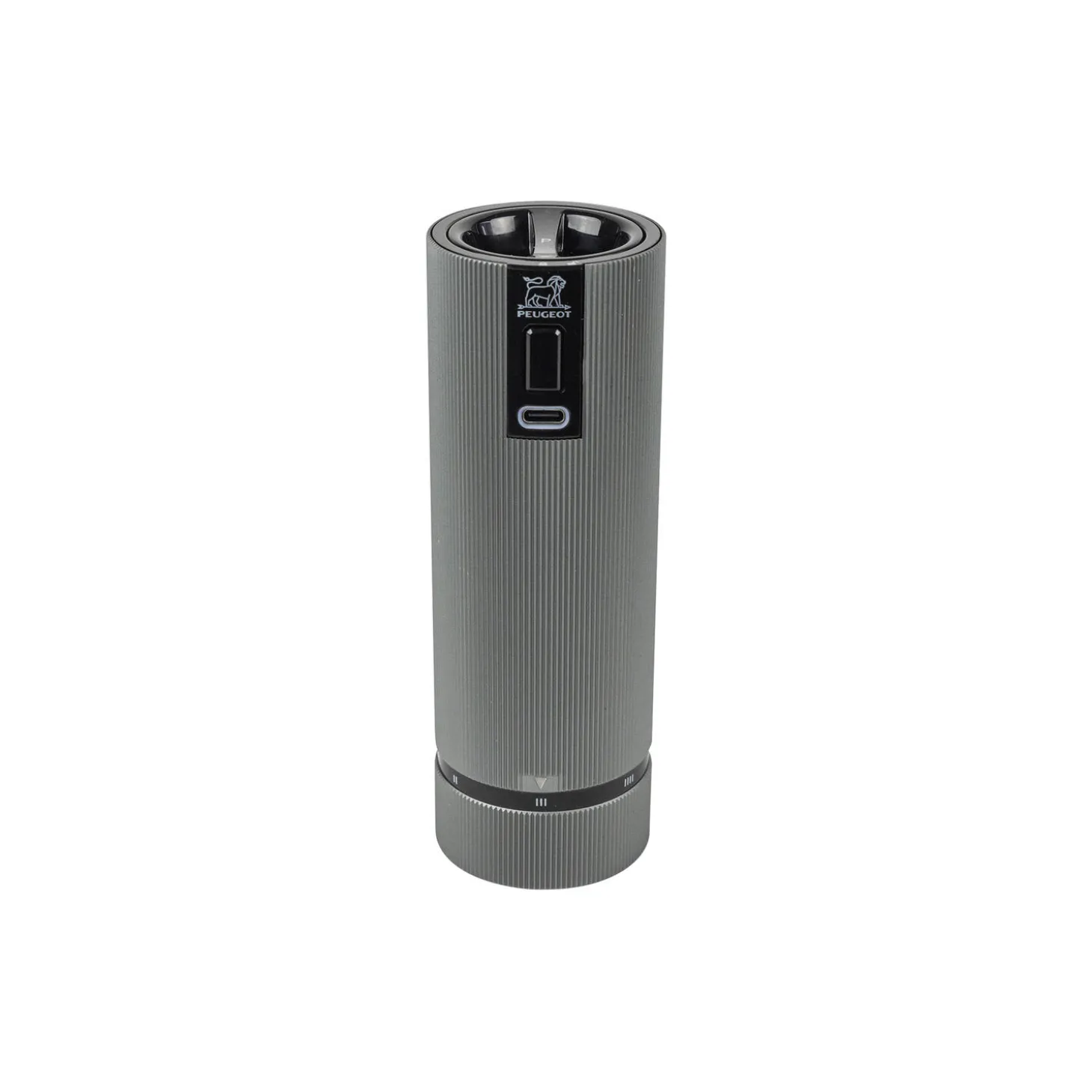 Line elektrisk peberkværn, 15 cm. Peugeot stilrene Line-serie er udvidet med en elektrisk saltkværn i farven aluminium og en elektrisk peberkværn i farven carbon. De stilfulde Line-kværne er det perfekte og ultramoderne valg til spisebordet og køkkenet med et kompakt, grafisk design i aluminium med smalle lodrette riller. Peugeots elektriske kværne er så praktiske, at du kan bruge dem med den ene hånd, mens du laver mad med den anden. Med et enkelt tryk sættes den lydløse mekanisme i gang og kværner effektivt den helt rigtige mængde salt eller peber. Kværnen har Peugeots livstidsgaranterede kværnemekanisme med det unikke u’Select justeringssystem. Der er seks foruddefinerede kværnindstillinger, og malingsgraden justeres ved at dreje den nederste del af kværnen med markeringer fra 1 til 6 – jo lavere indstilling, jo finere males der, og omvendt. Påfyldes let ved at åbne låget i toppen. Kværnen har et Li-ion batteri med lang driftstid og kort opladningstid. Opladerkabel følger med. Fremstillet i Frankrig. Opbevar kværnen tørt. Tåler ikke opvaskemaskine.